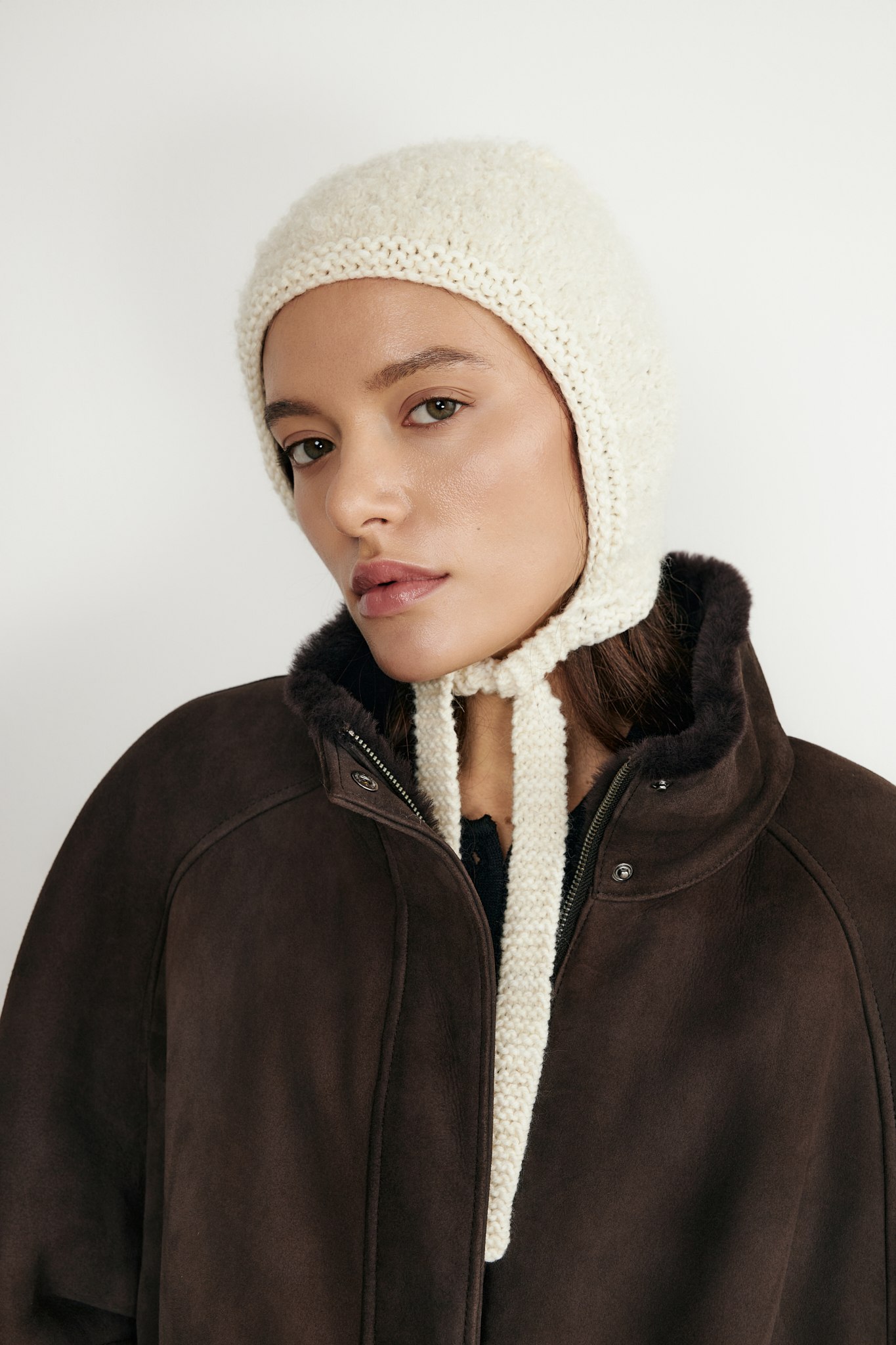 1. Связан вручную из пряжи букле на основе натуральной шерсти — уникальная фактура с мягкими узелками и петельками делает изделие особенно уютным.