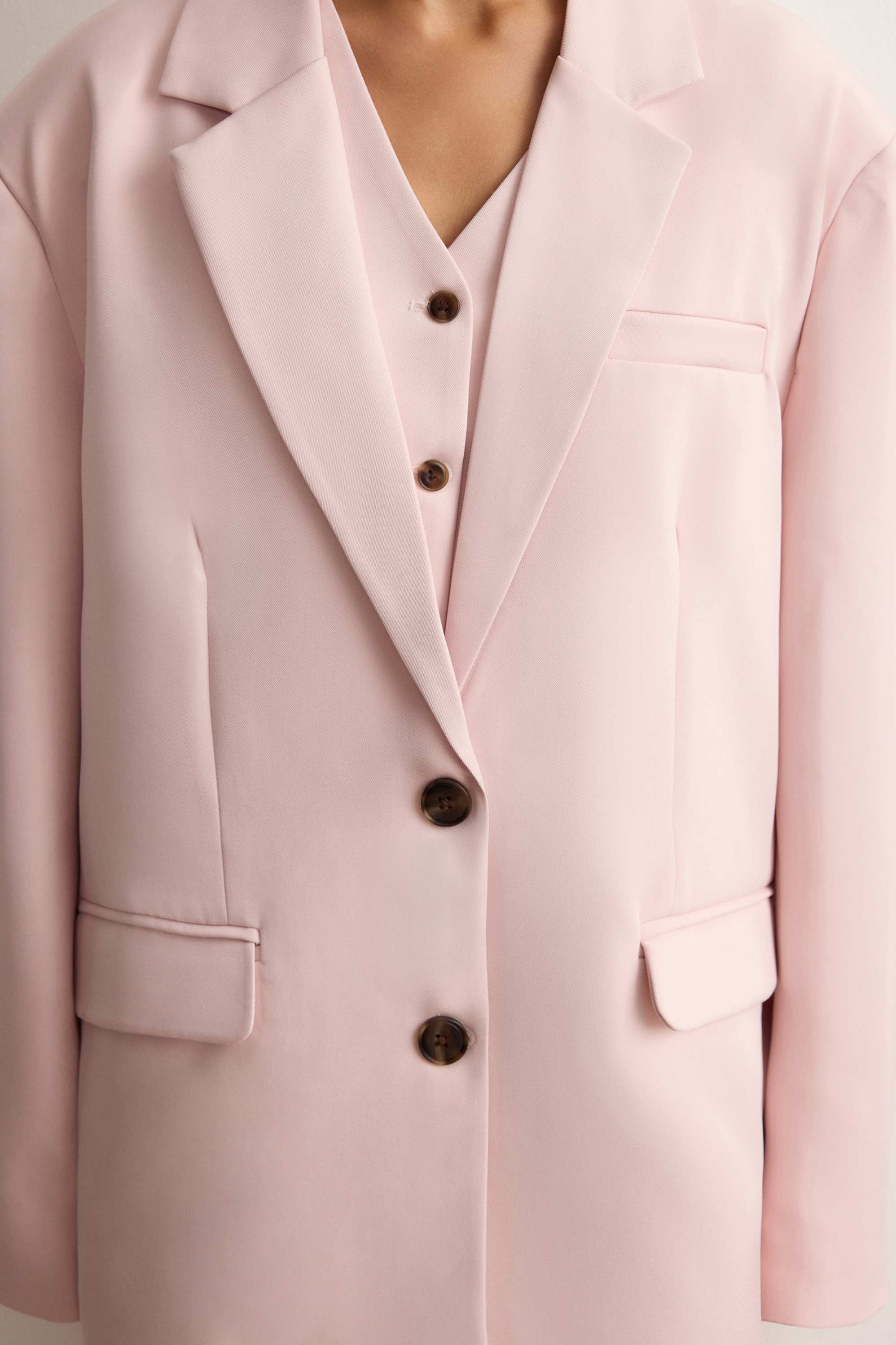 Однобортный жакет с широкими прямоугольными лацканами — классика, помноженная на функциональность и комфорт. Разработали жакет таким образом, чтобы он идеально сочетался с юбками и платьями длины мини и заканчивался на линии подола. Модель со шлицей, нагрудным карманом и боковыми клапанами застегивается роговыми пуговицами. Выполнен из костюмной ткани на основе шелковистой вискозы с мягким хлопковым подкладом.