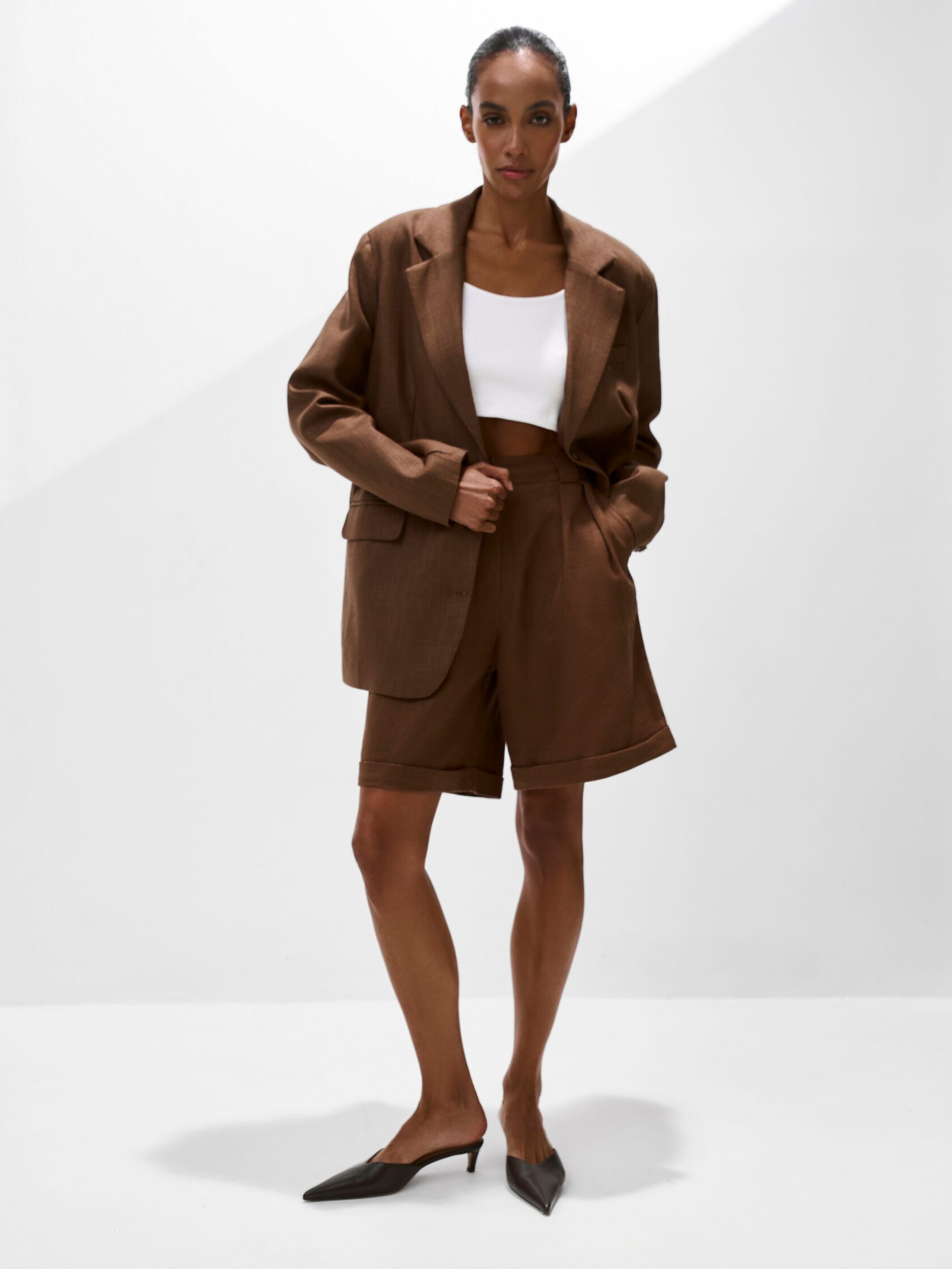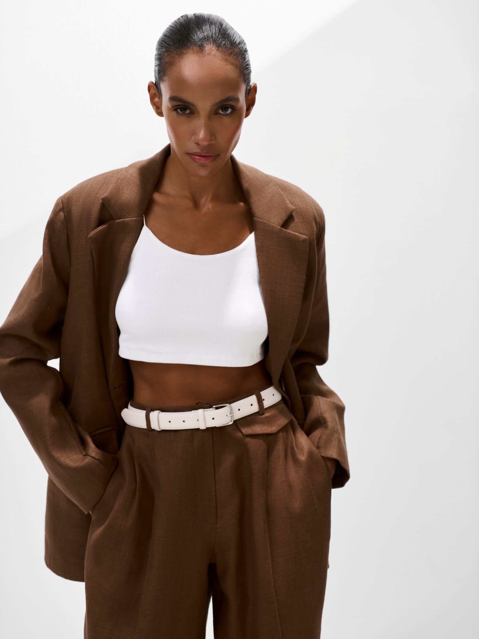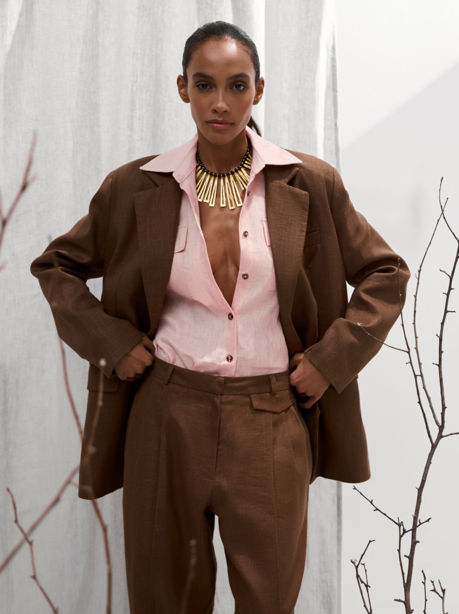 Льняной жакет, вдохновленный моделями из мужского гардероба — беспроигрышное решение для офисных будней и вечерних прогулок летом.