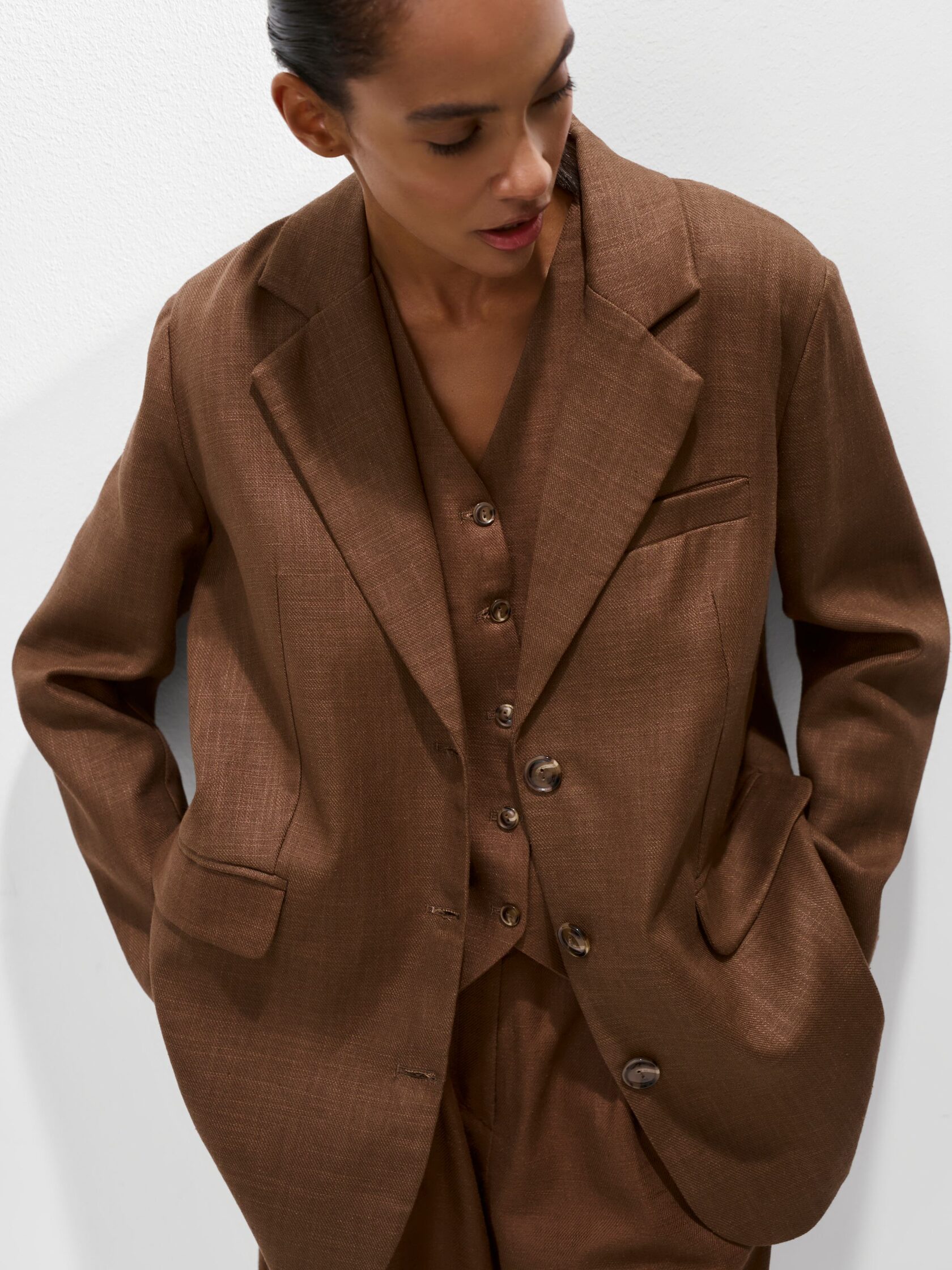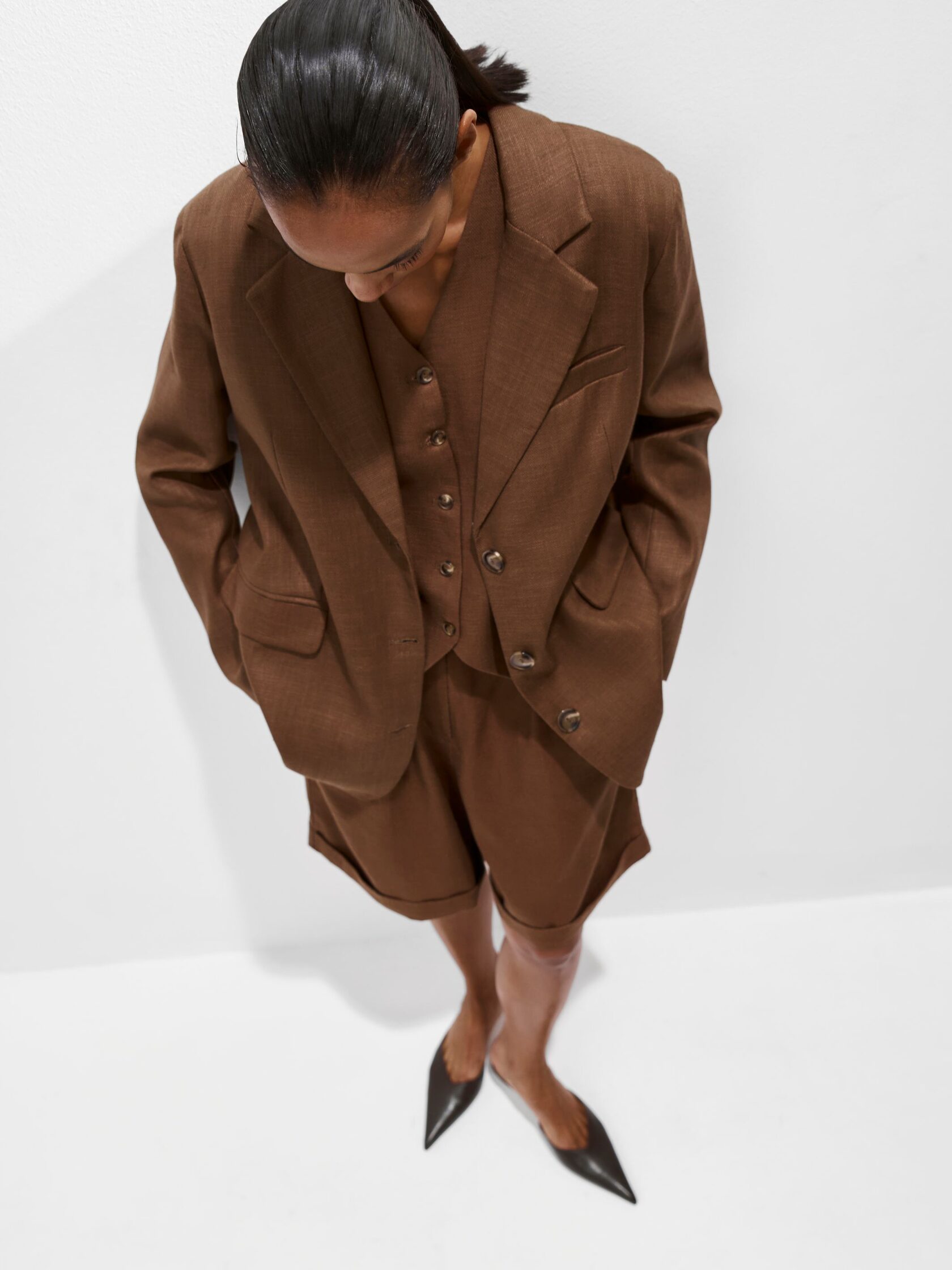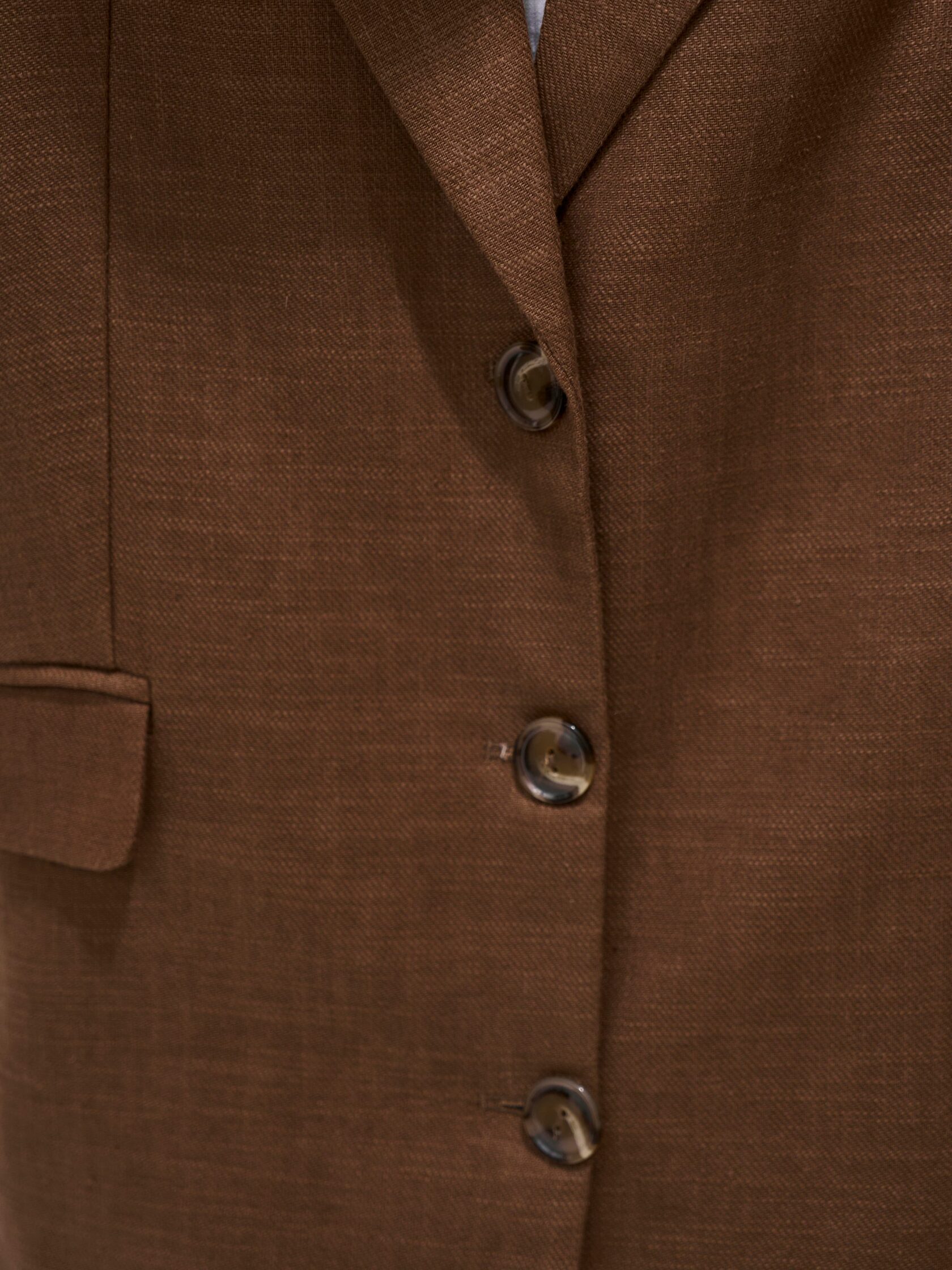 Льняной жакет, вдохновленный моделями из мужского гардероба — беспроигрышное решение для офисных будней и вечерних прогулок летом.