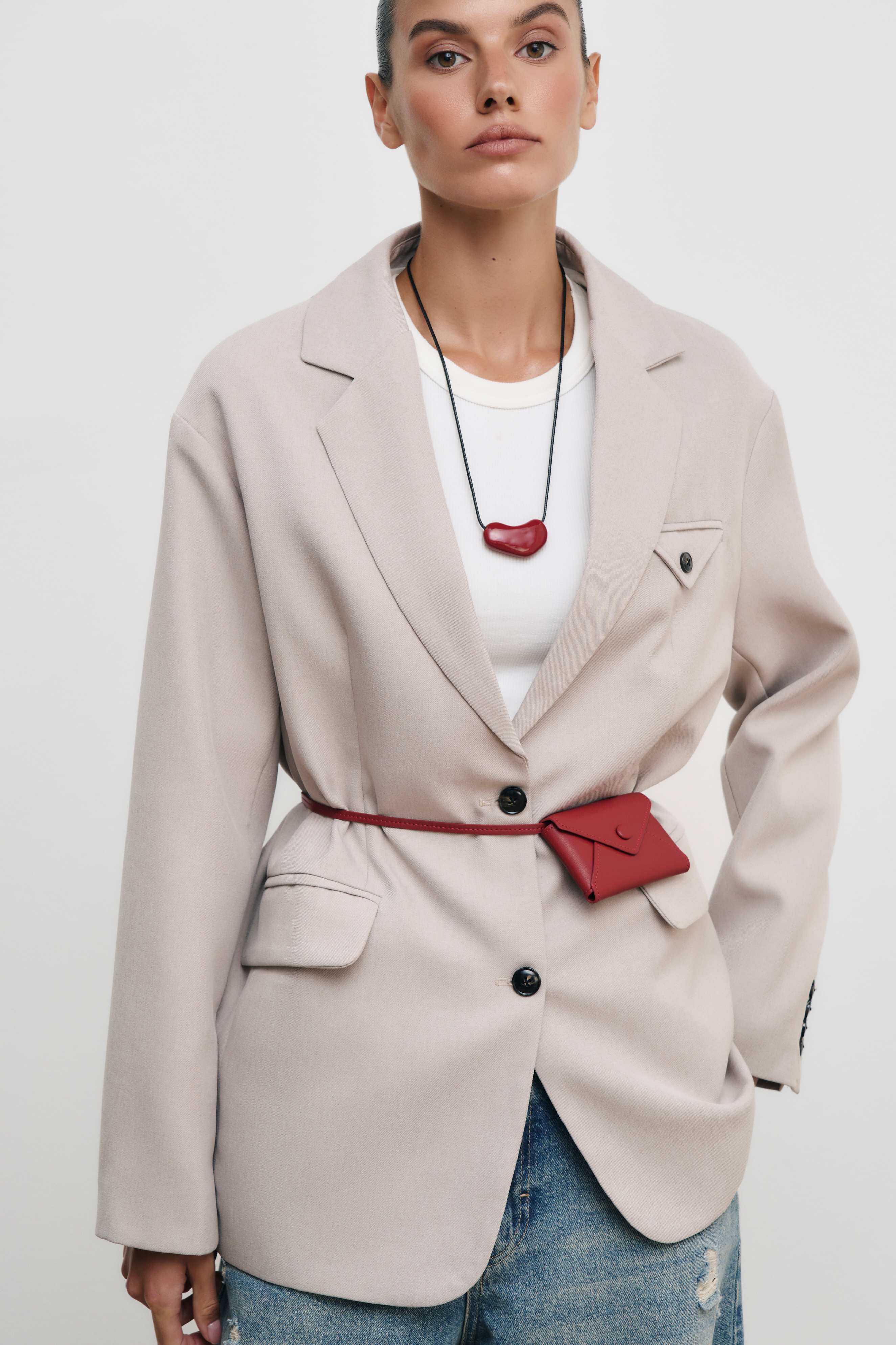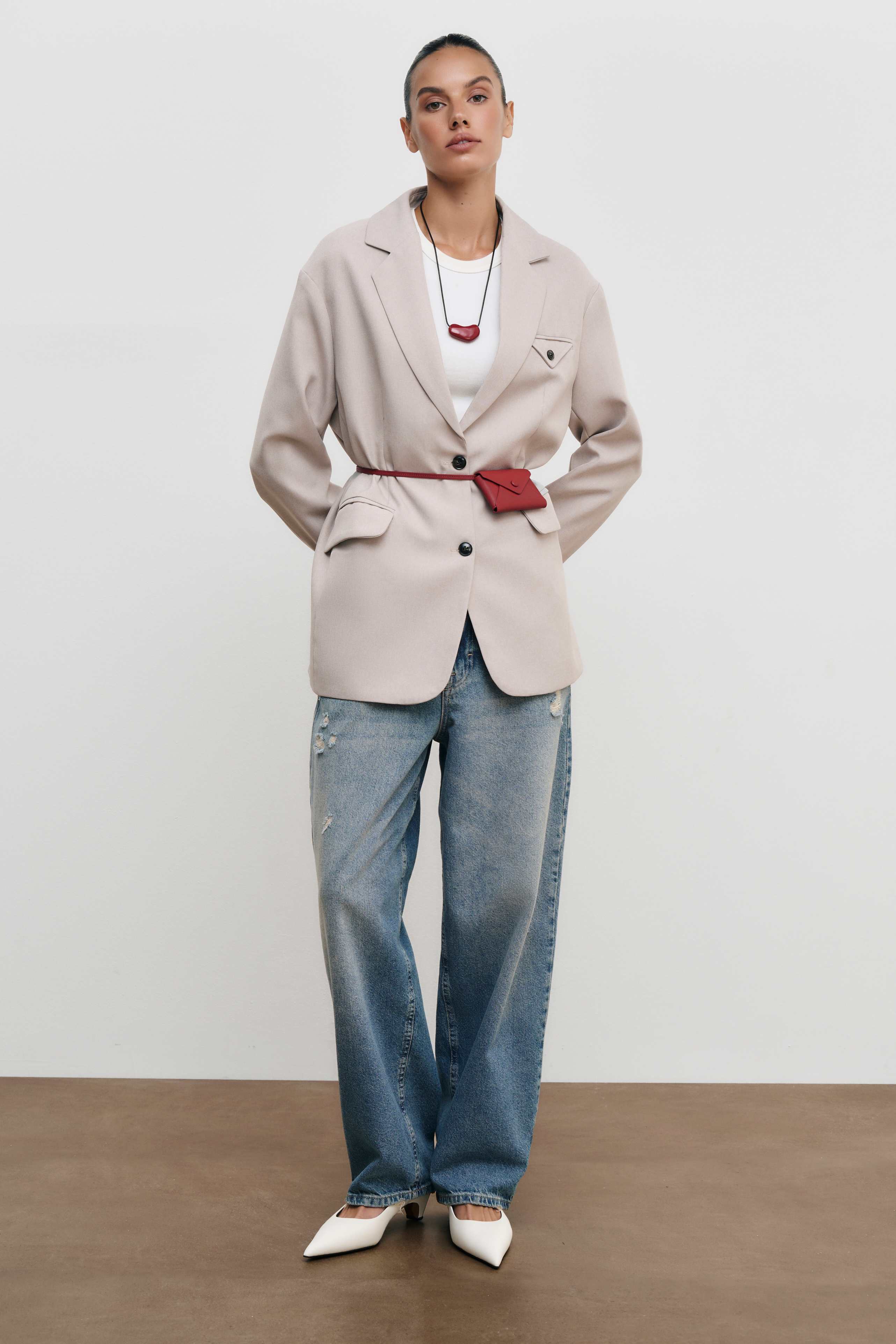 Завершите образ классическими брюками, юбкой или джинсами из нашей коллекции.