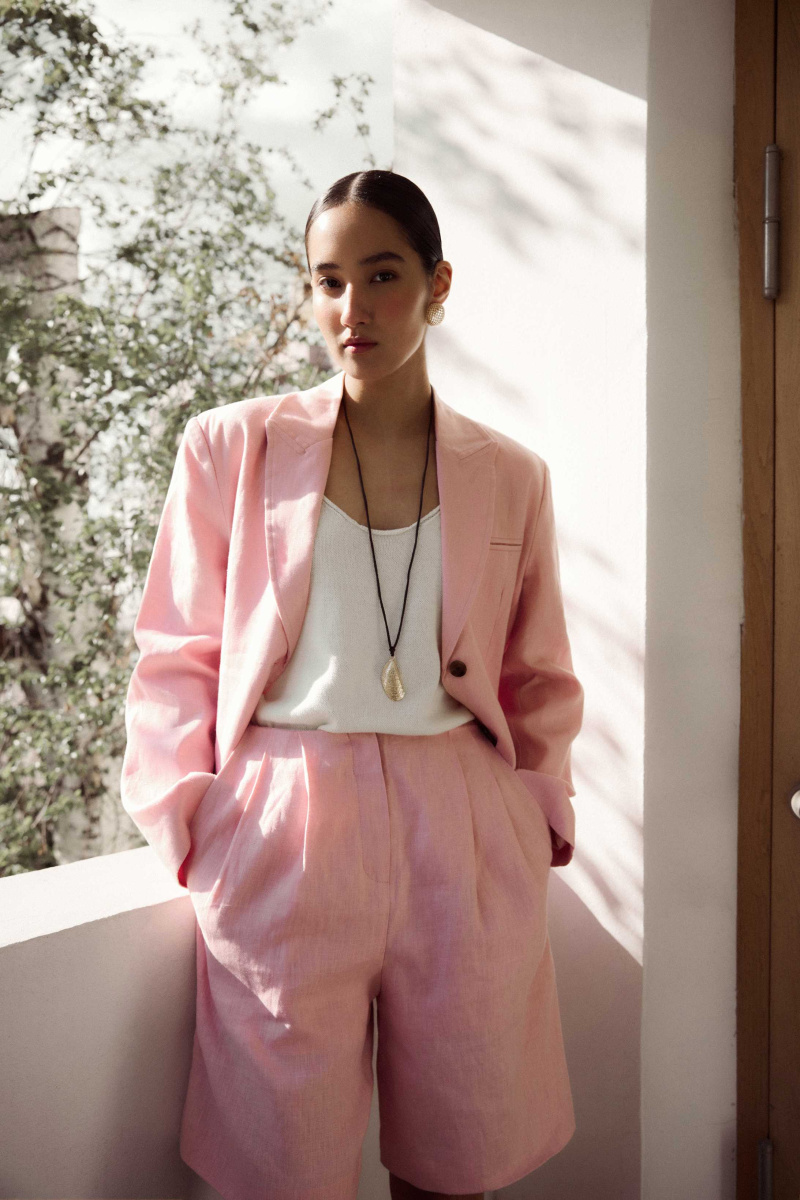 Названия изделий в коллекции «Лен. Создано в России» вызывают теплые ассоциации с летом из детства. Жакет Sorbet напоминает мороженое из протертой клубники, собранной в саду у бабушки, и домашних сливок.