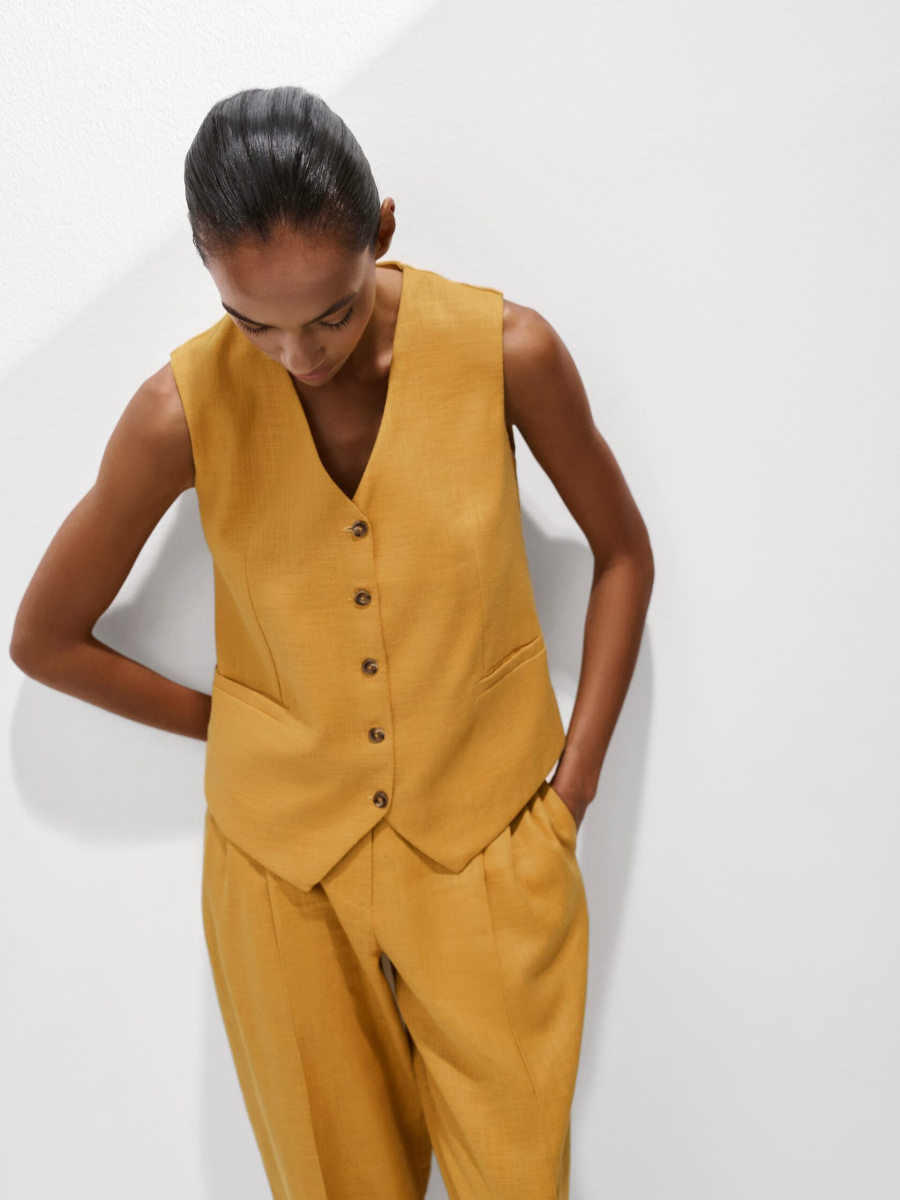 Носите жилет вместо топа, комбинируя с жакетом, шортами-бермудами или брюками из нашей коллекции.