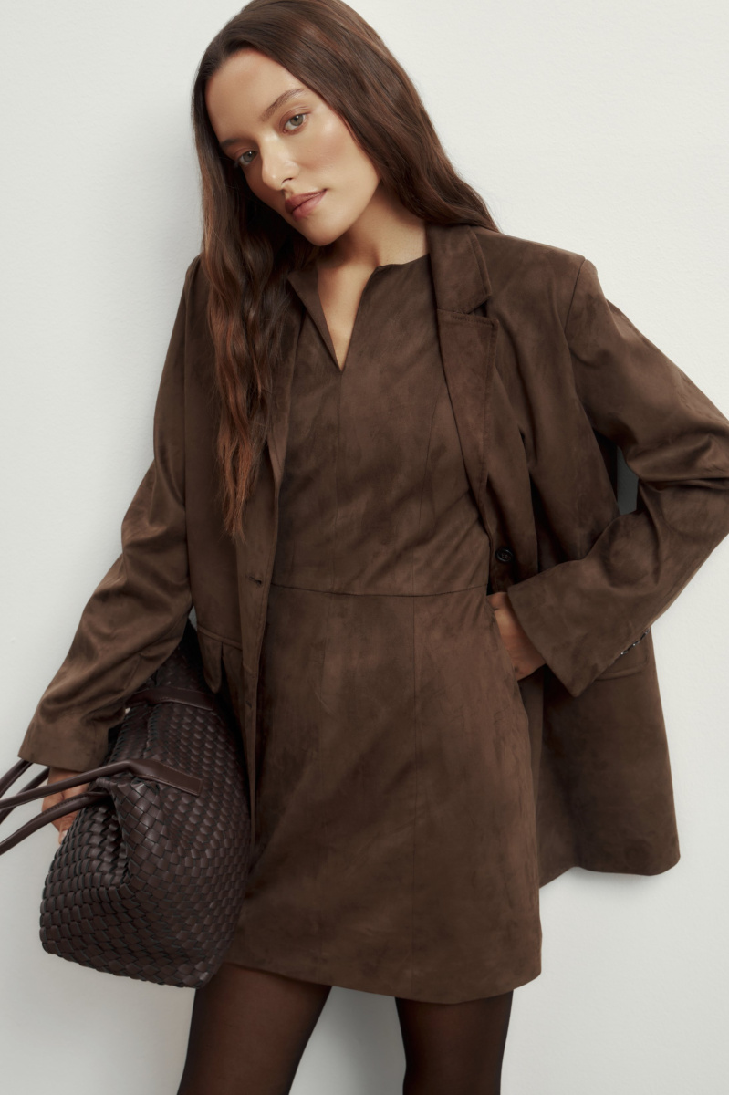 Лаконичное платье из искусственной замши — самое осеннее из нашей коллекции.