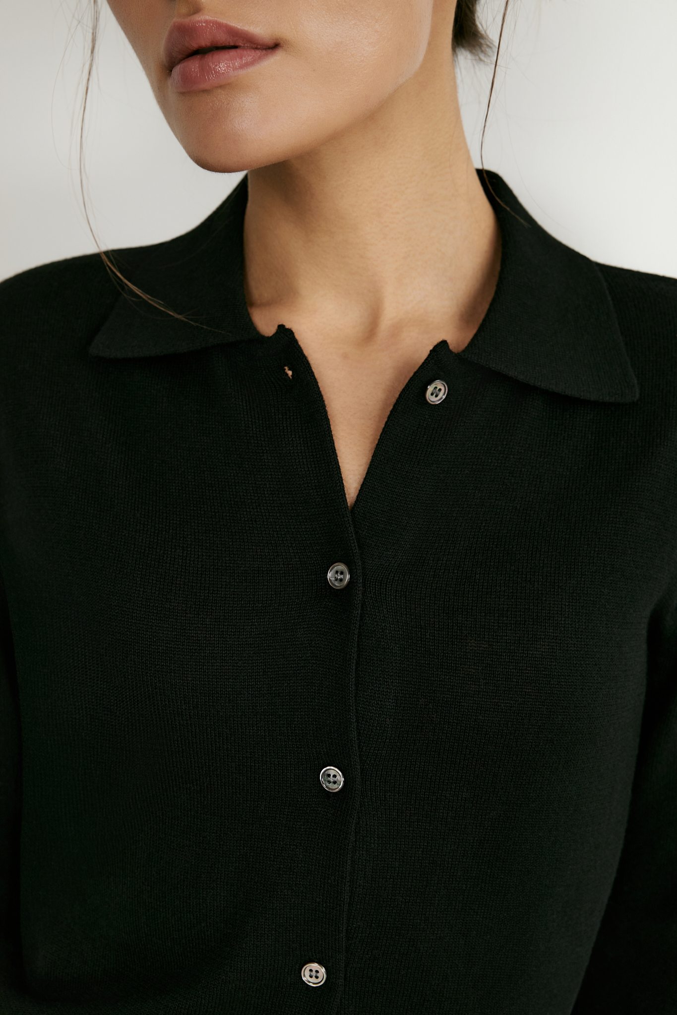 Лаконичный кардиган с отложным воротником станет альтернативой лонгсливу и тонкому джемперу в образах для любого случая.