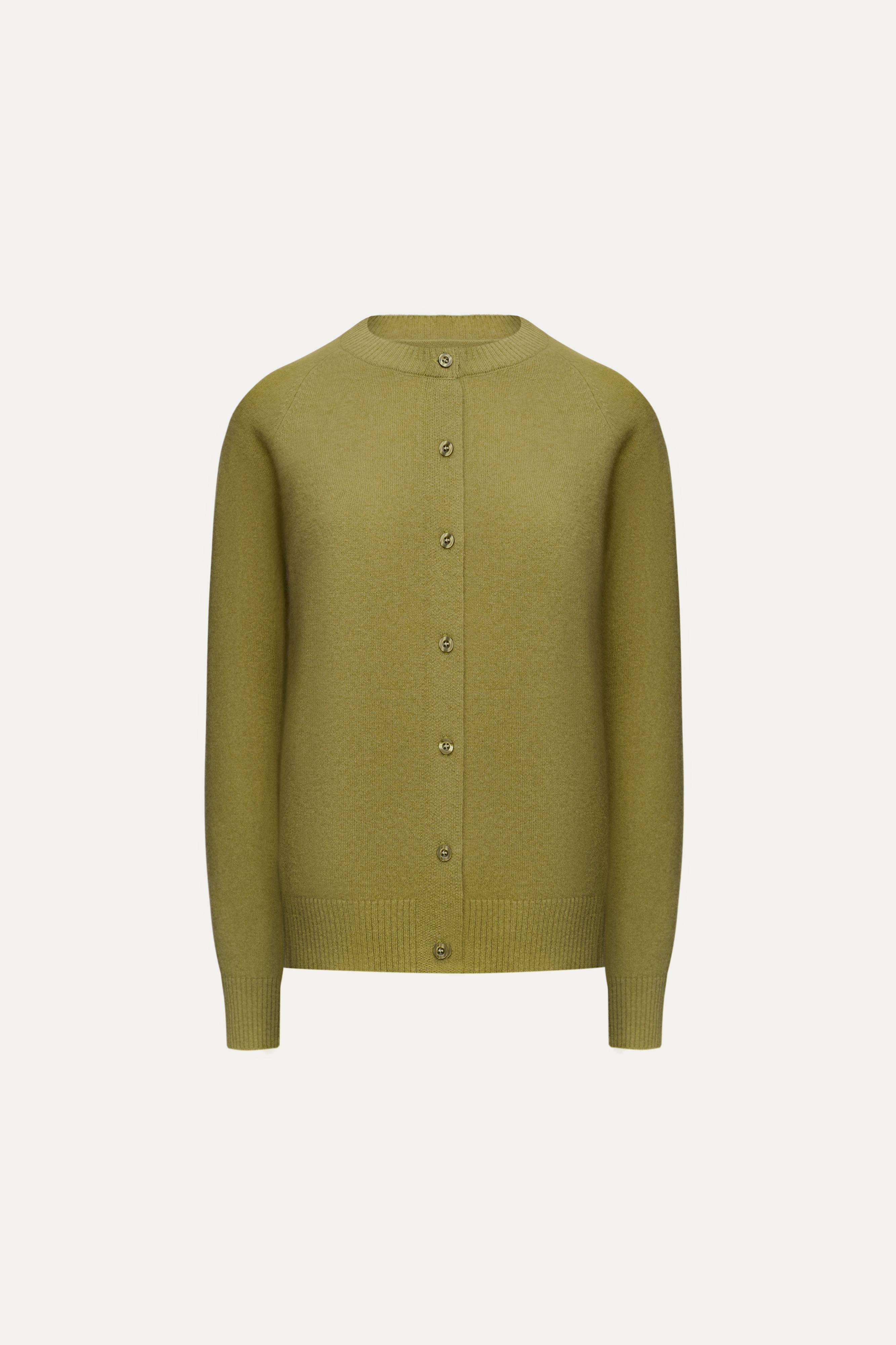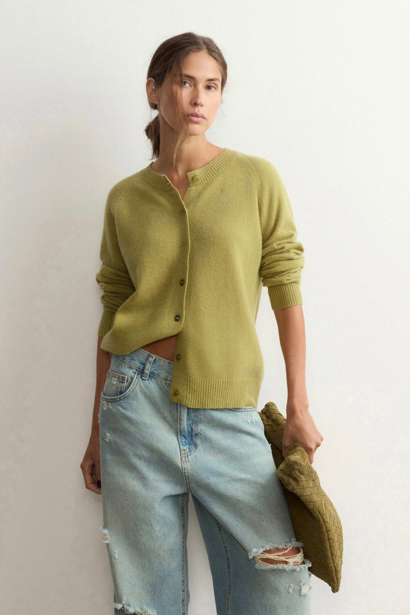 Лаконичный кардиган на пуговицах — универсальное решение для холодного сезона: он может стать самостоятельным верхом или вторым слоем на топ или бадлон. Модель с круглым вырезом горловины связана из 100% натуральной шерсти и дополнена эластичными краями в рубчик. Акцентным в гардеробе изделие делают оттенки — оливковый и нежно-розовый.