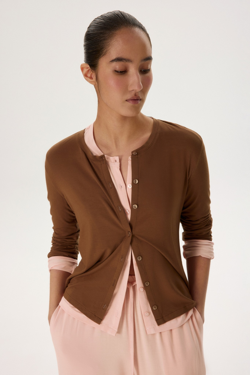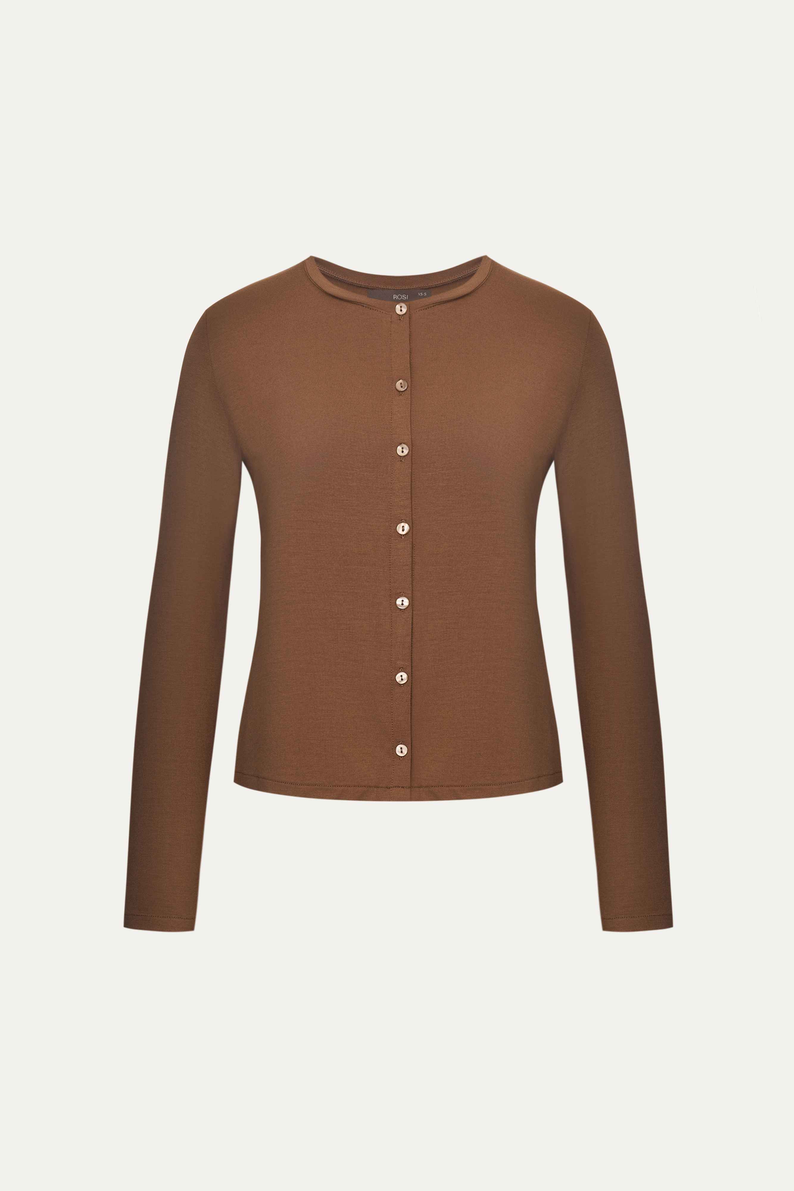 Кардиган с круглым вырезом — комфортное решение для базового гардероба.