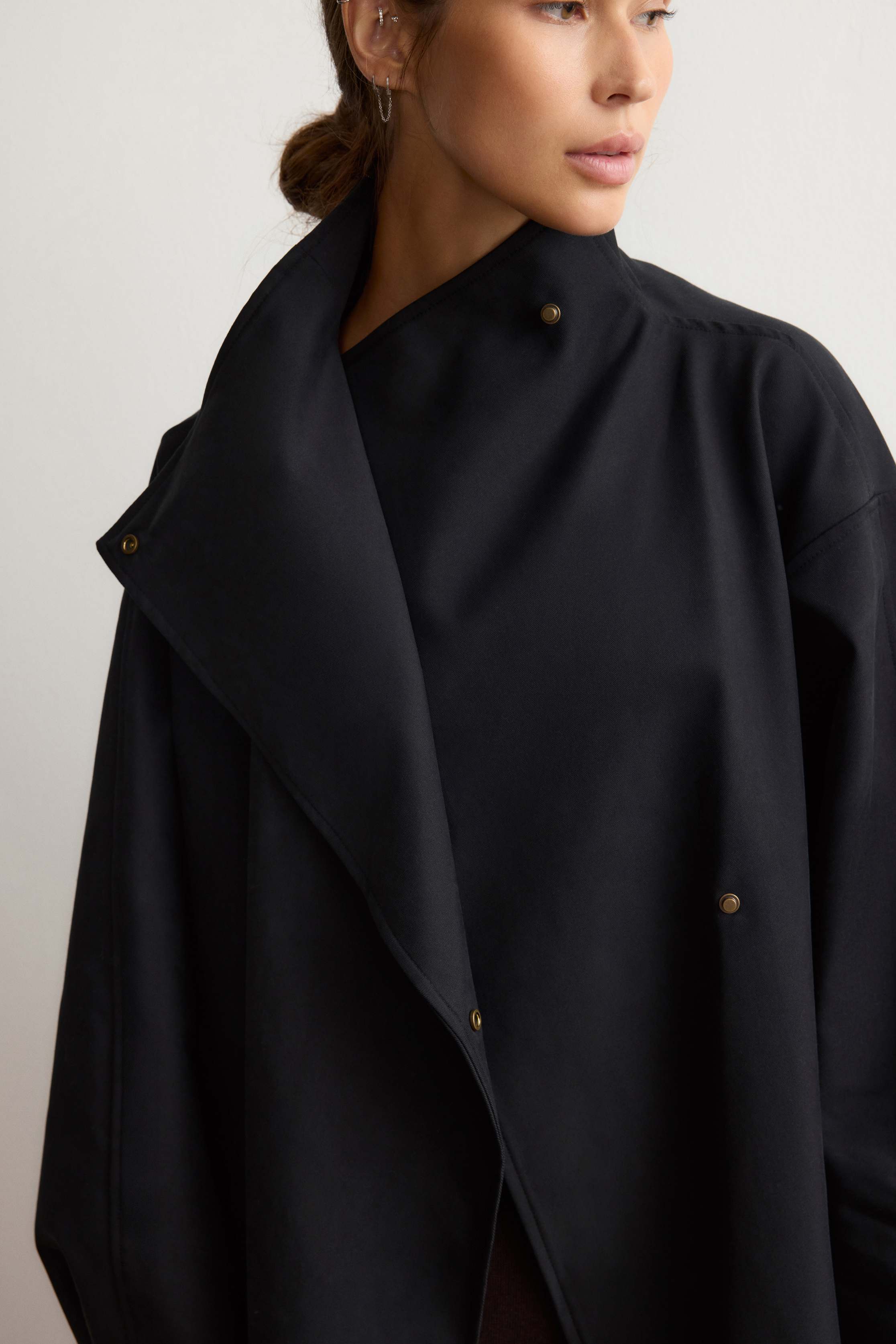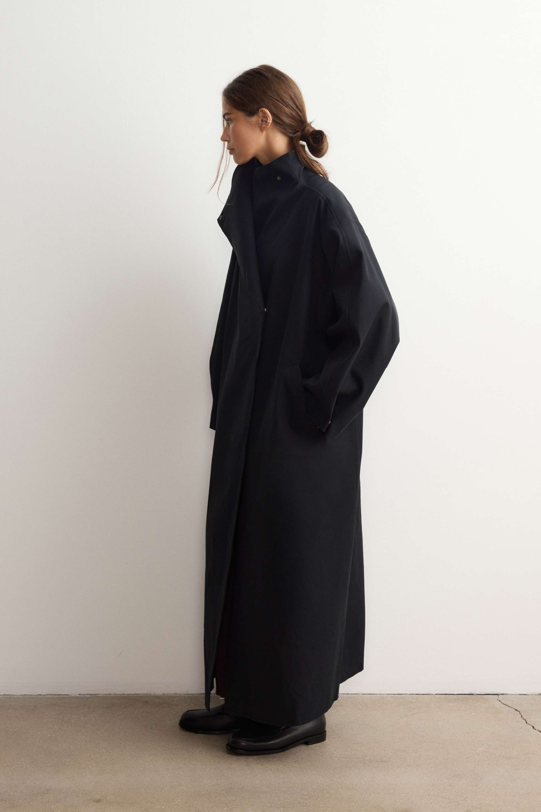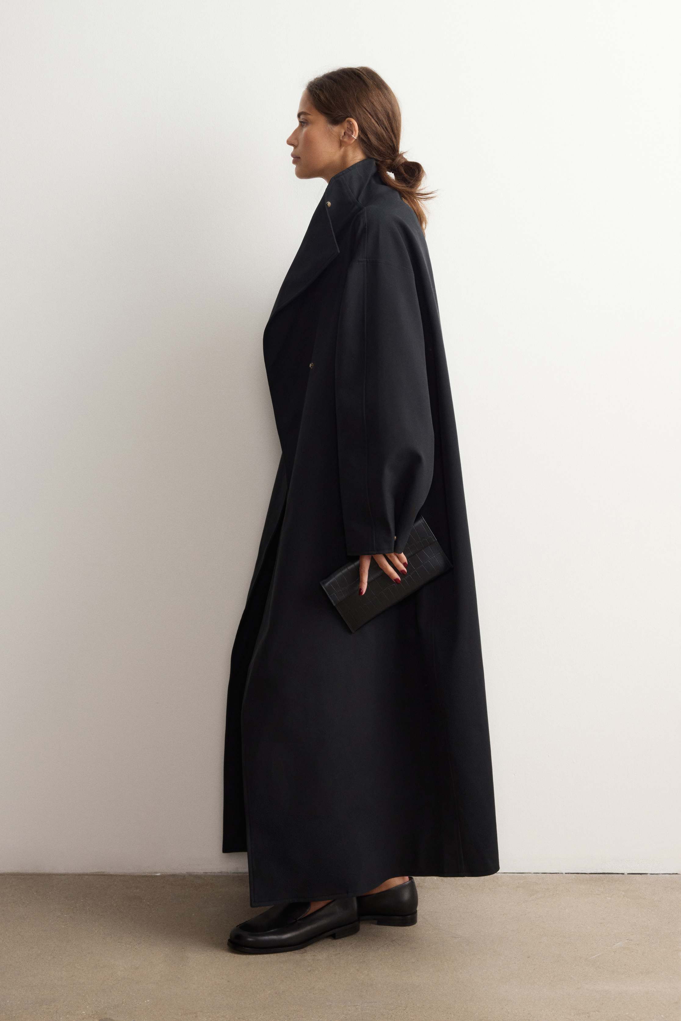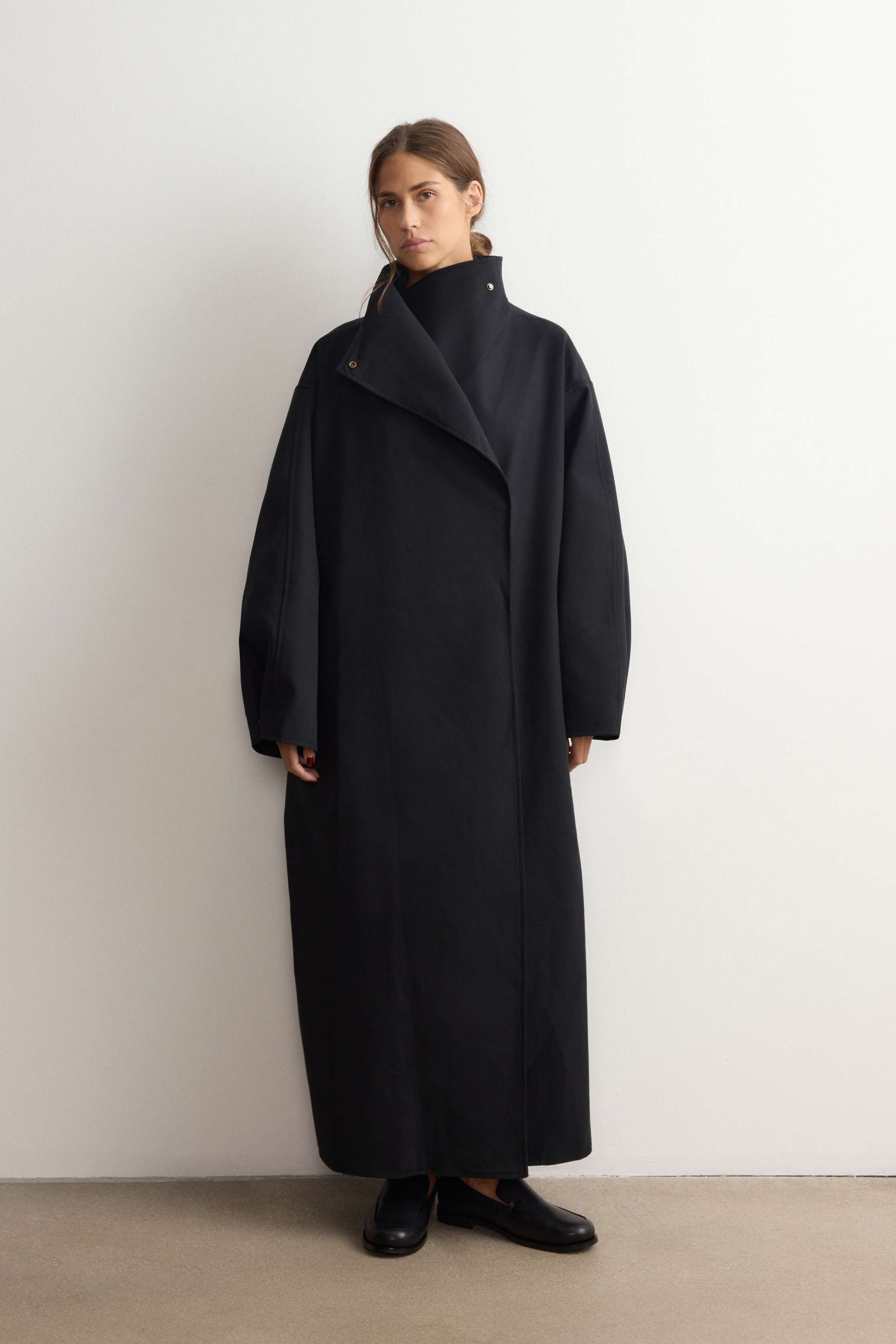 Прямой объемный тренч длины макси из плотного хлопка и лиоцелла — альтернатива классическим плащам: он напоминает одеяло, в которое хочется укутаться с наступлением холодов. Уютным его делает свободный крой со спущенной линией плеч, а высокий воротник-трансформер и манжеты на кнопках, помимо эстетики, дополнительно защищают от ветра и дождя. Застегивается на кнопки. На подкладке из шелковистой вискозы. Температурный режим: до 5°С (зависит от личных ощущений).