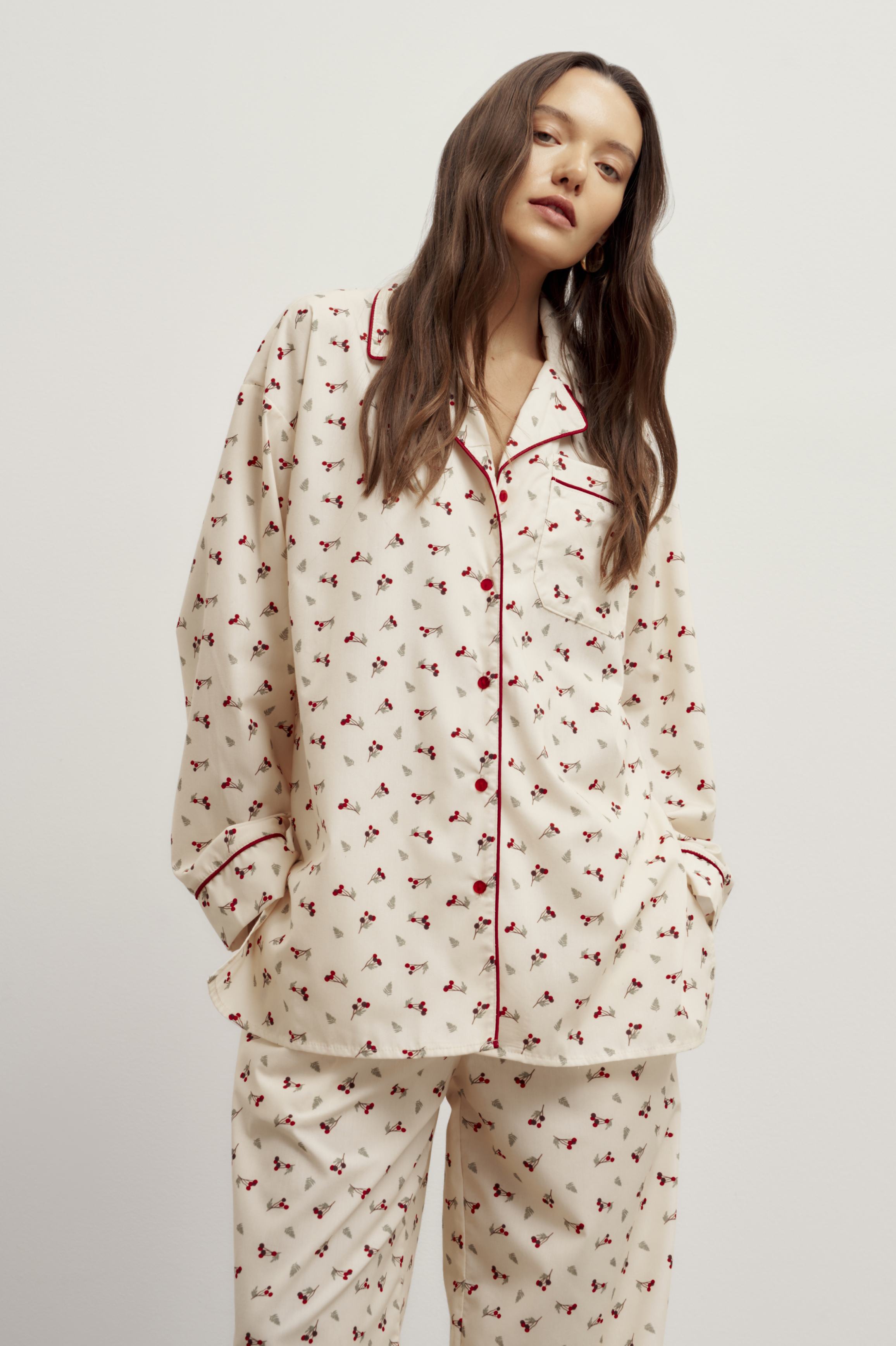 Рубашка в пижамном стиле из хлопка