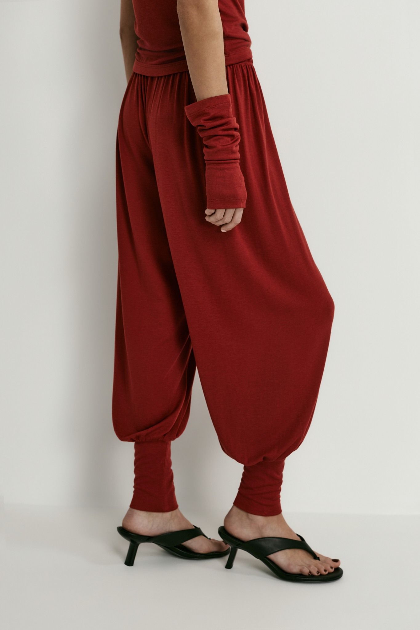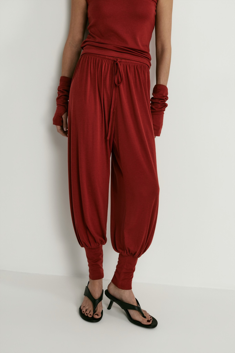 Струящиеся брюки-алладины зададут расслабленное настроение образу и позволят чувствовать себя комфортно до самого вечера.
