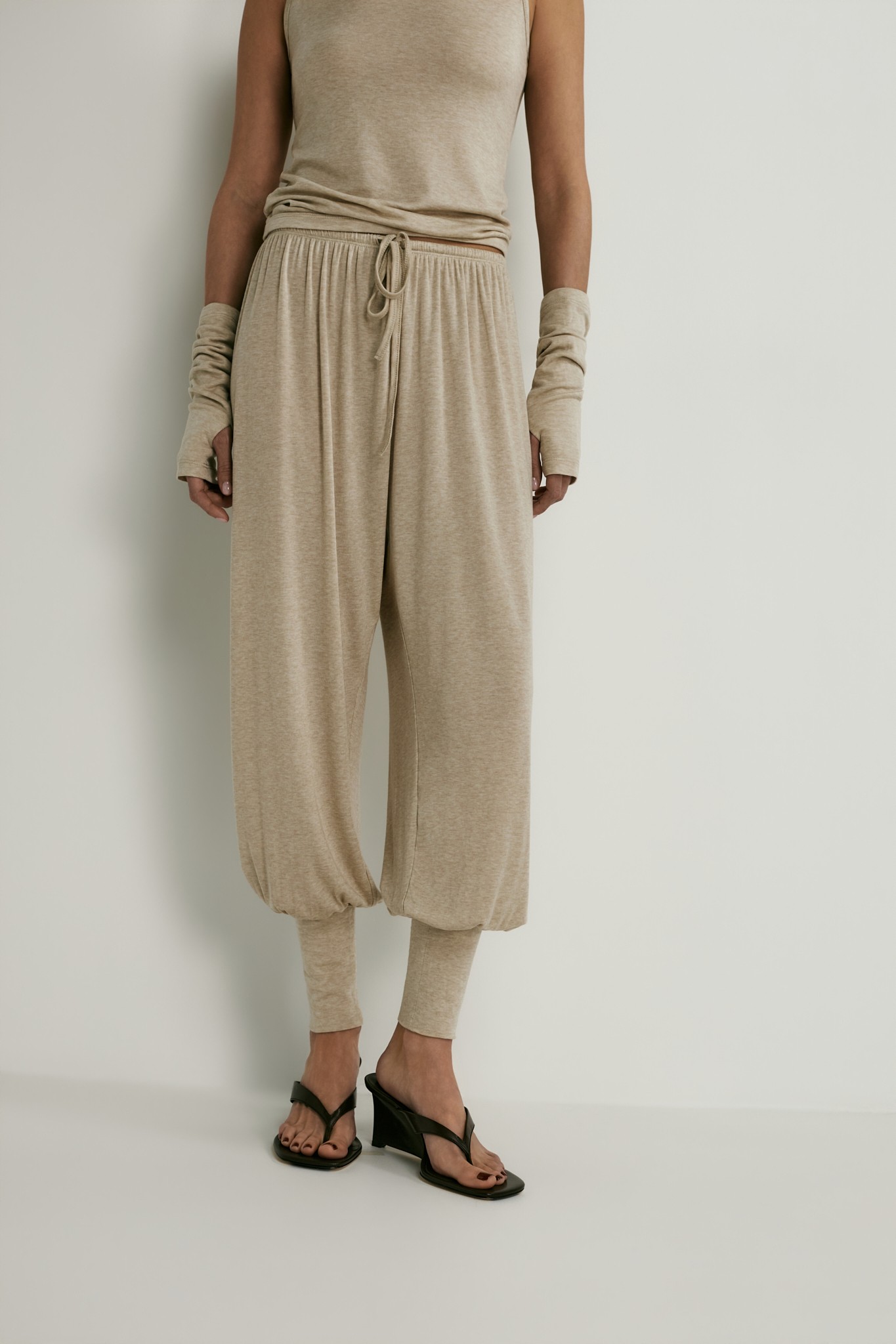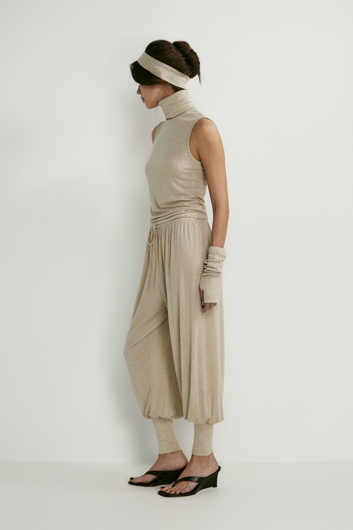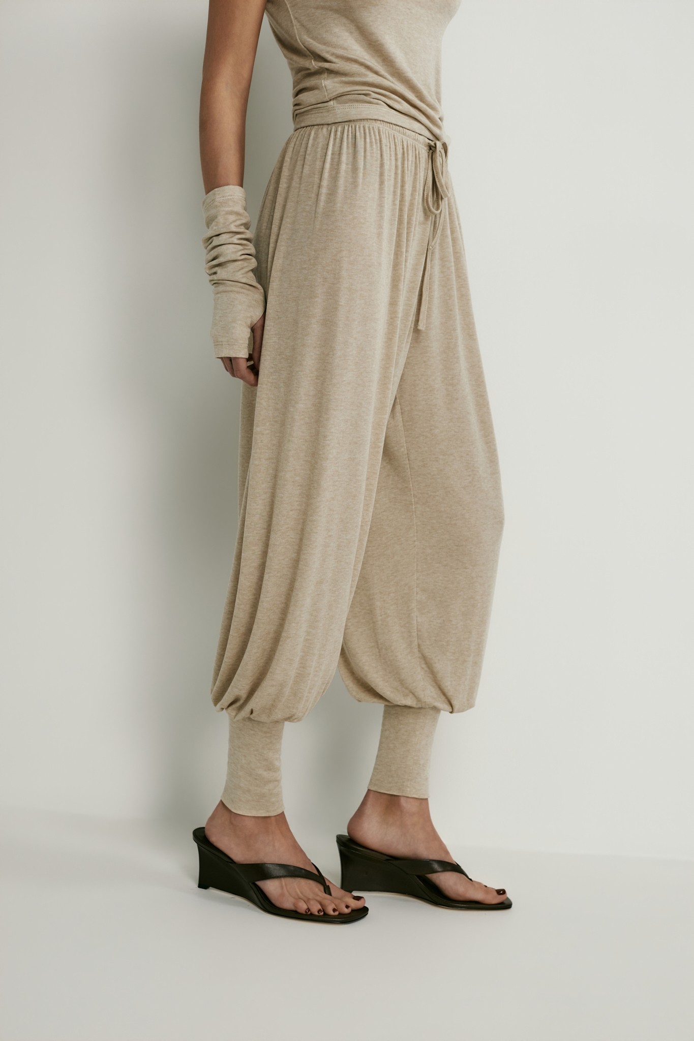 Струящиеся брюки-алладины зададут расслабленное настроение образу и позволят чувствовать себя комфортно до самого вечера.