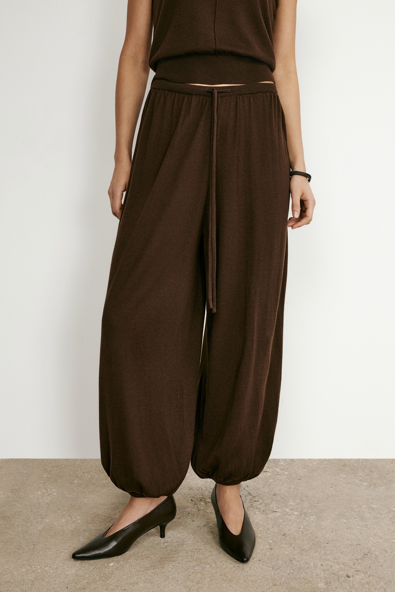 Широкие, со шнурком на поясе и манжетами на щиколотках — мы любим шаровары не только за стиль, но и за удобство. Их легко стилизовать с любой обувью, от уггов до сапог с широким голенищем.