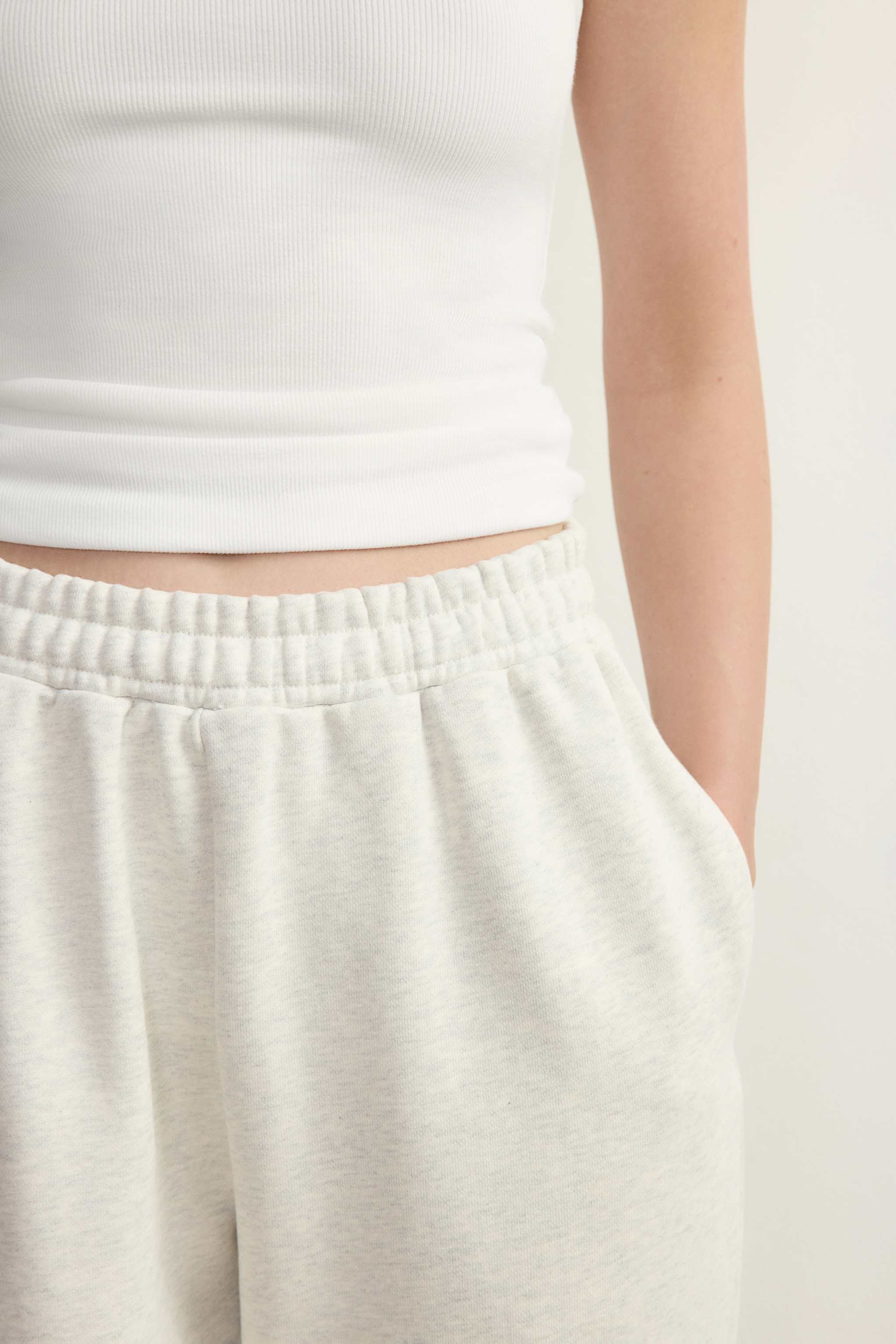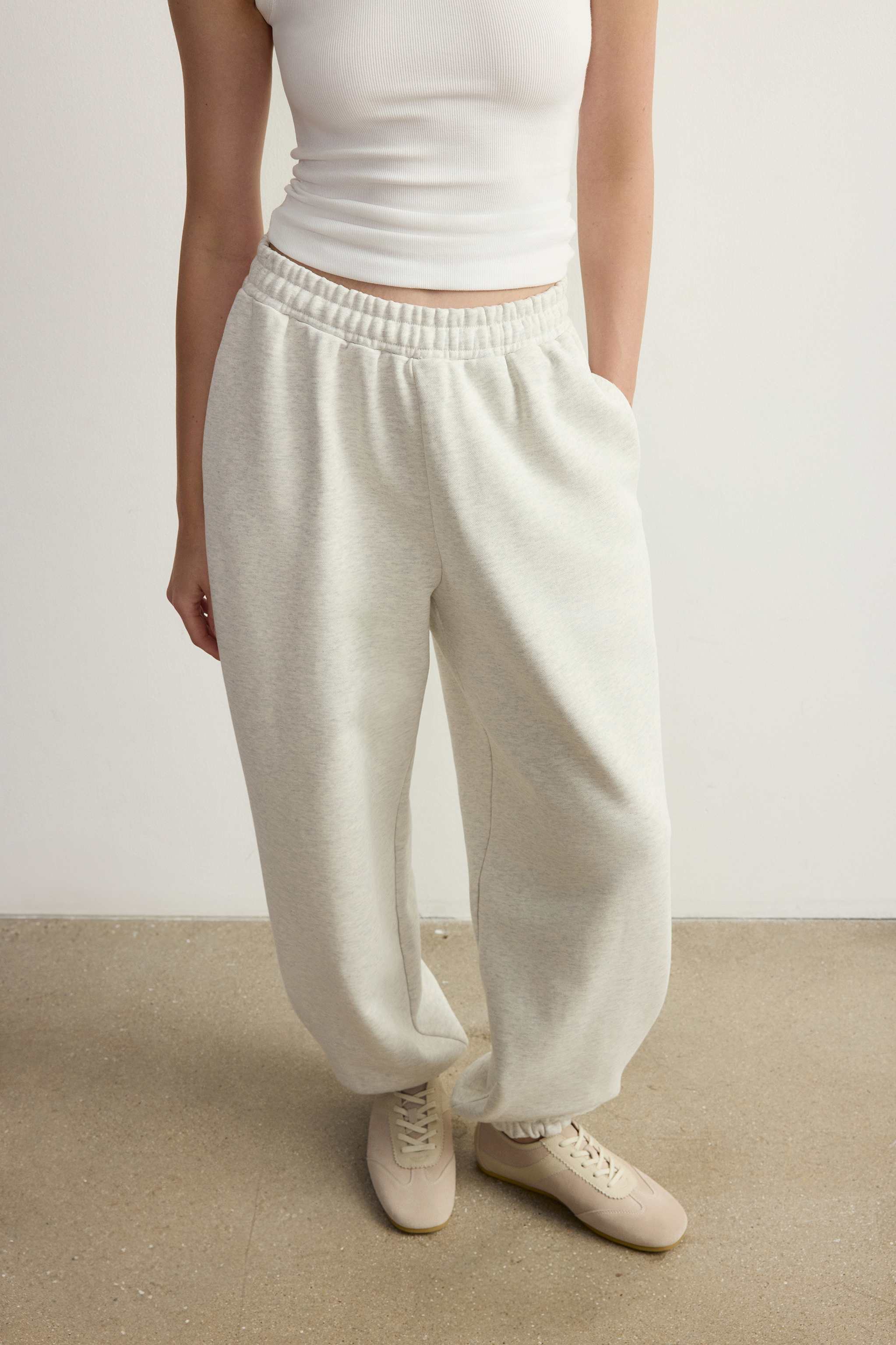 Джоггеры из плотного хлопкового футера с петельчатой изнанкой — идеальная одежда для неспешных прогулок и выходных. Дополнили эластичный пояс шнурком, чтобы отрегулировать посадку, а нижний край собрали на резинку для большего удобства. Дополняйте образ худи Nostalgia.