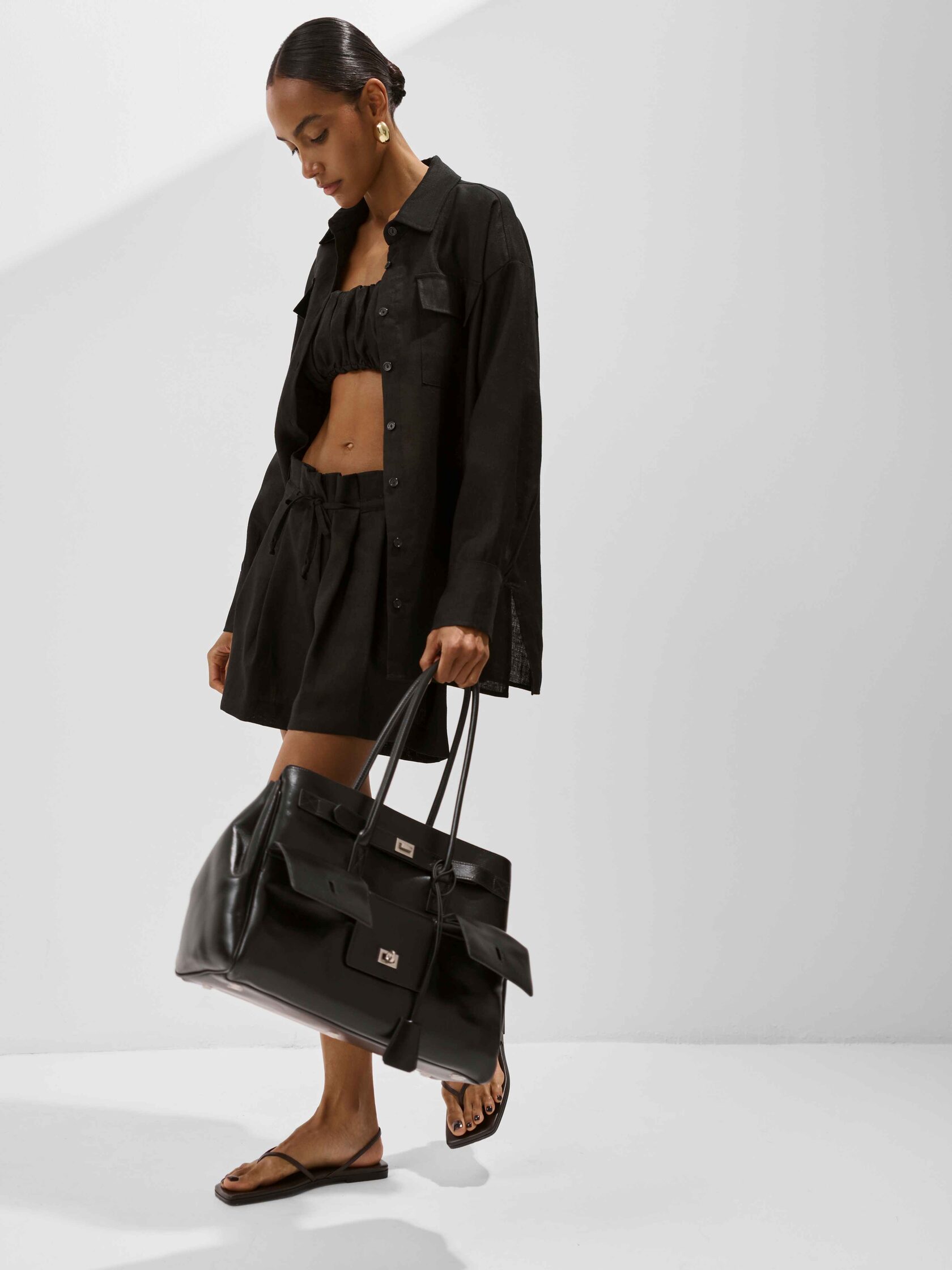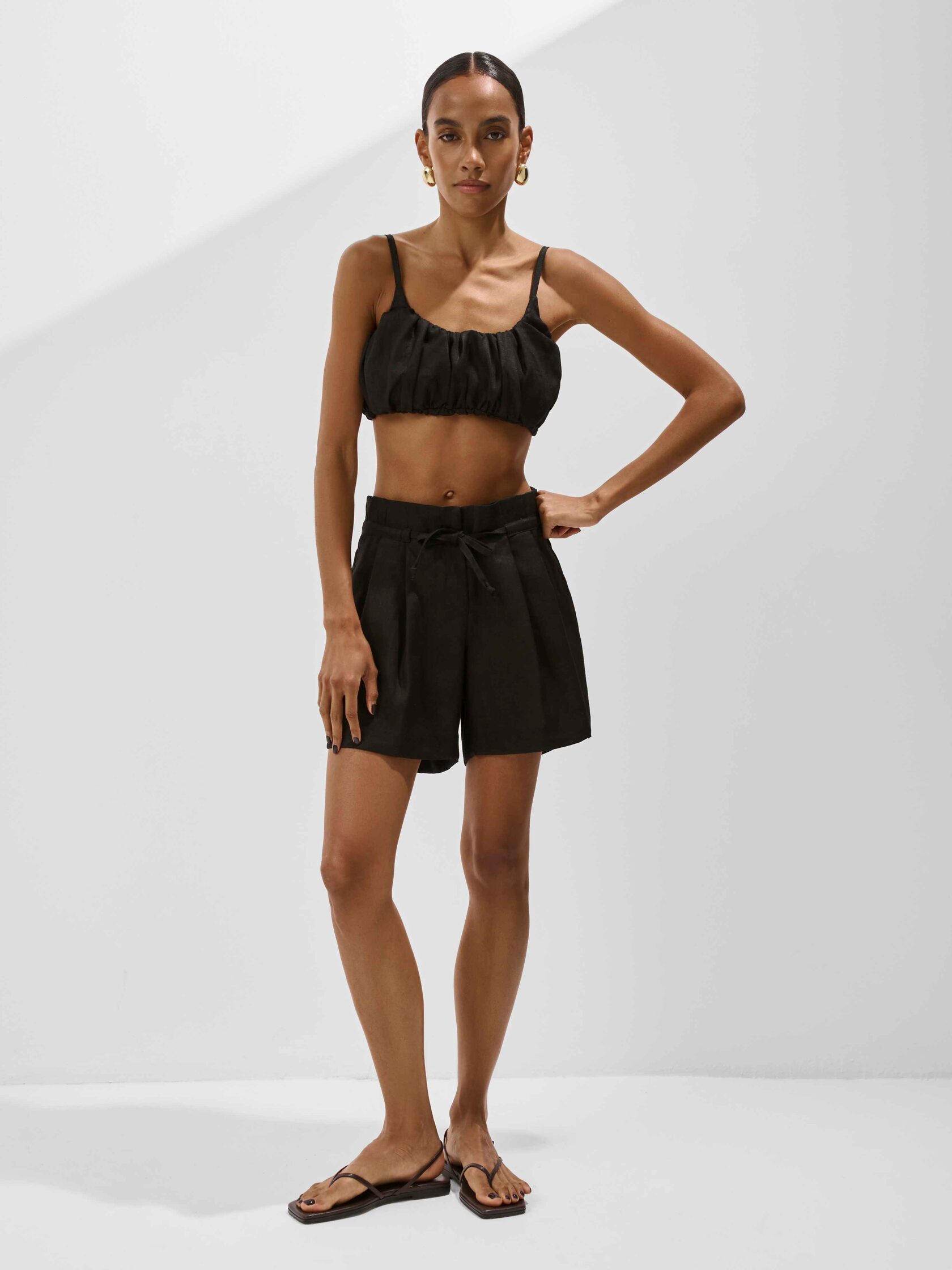 Сочетайте шорты с другими айтемами из нашей льняной коллекции: топом и рубашкой.