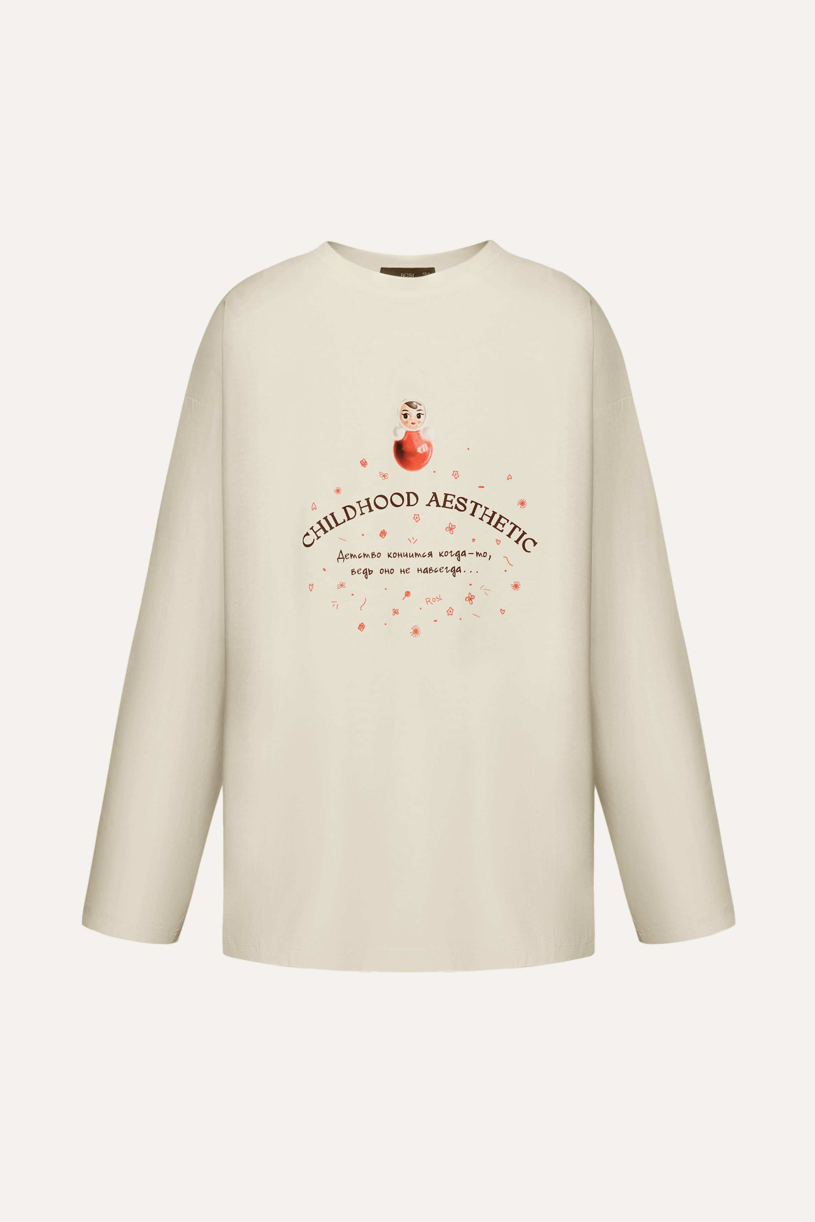 1. Неваляшки украсили наши новые лонгсливы — свободные, со спущенным плечом и круглым вырезом горловины.