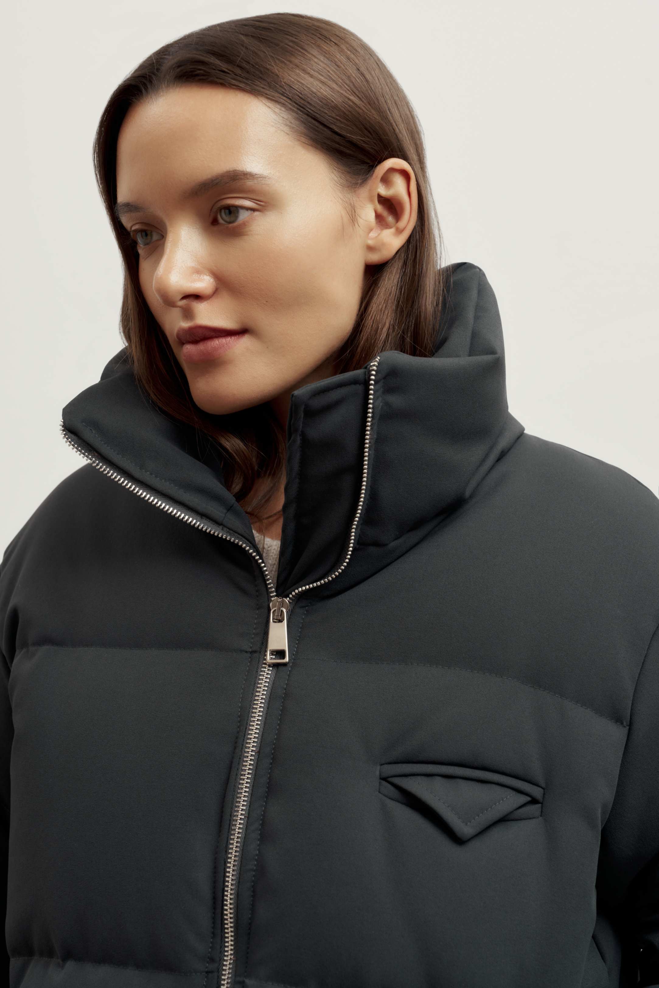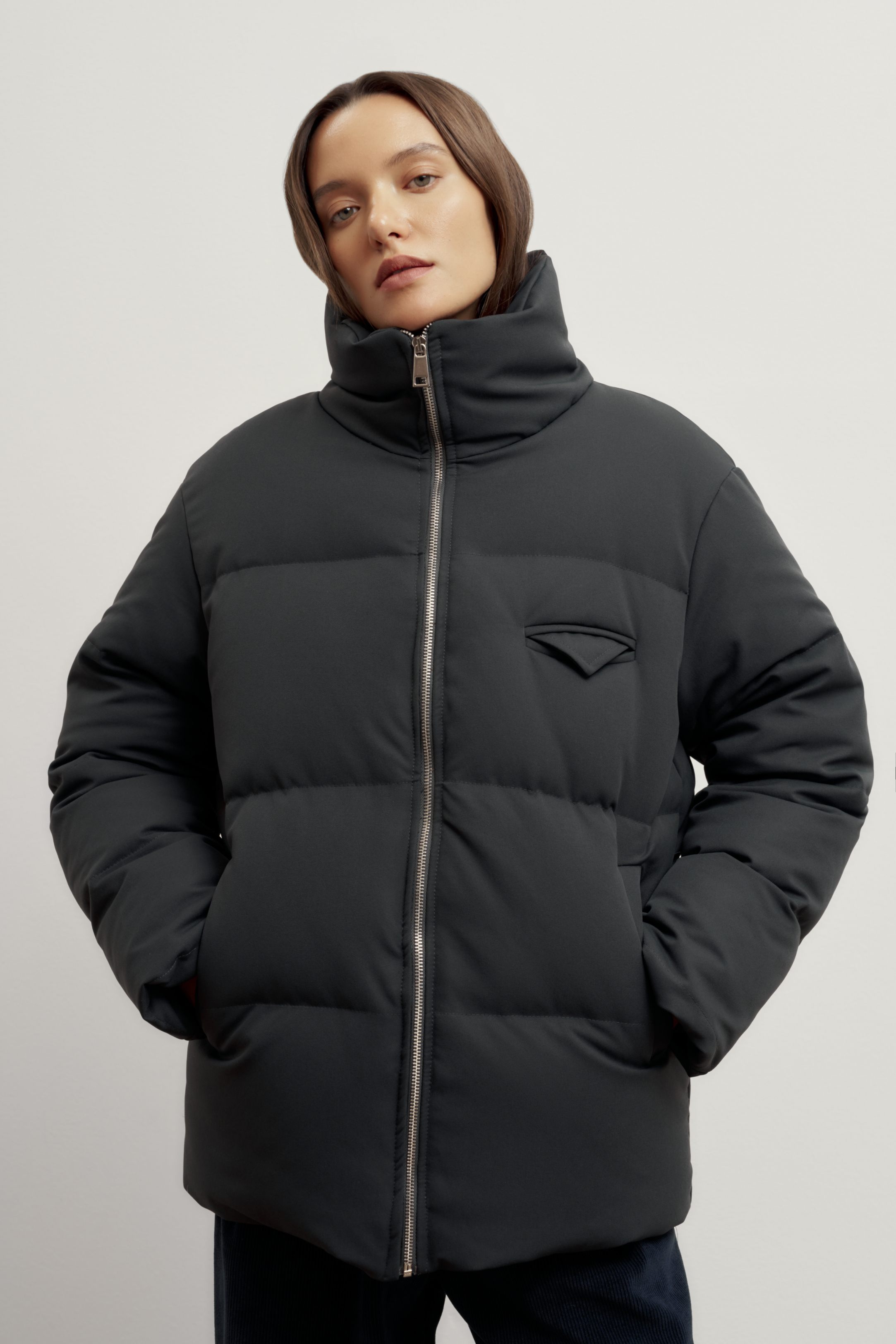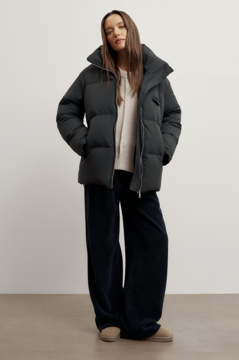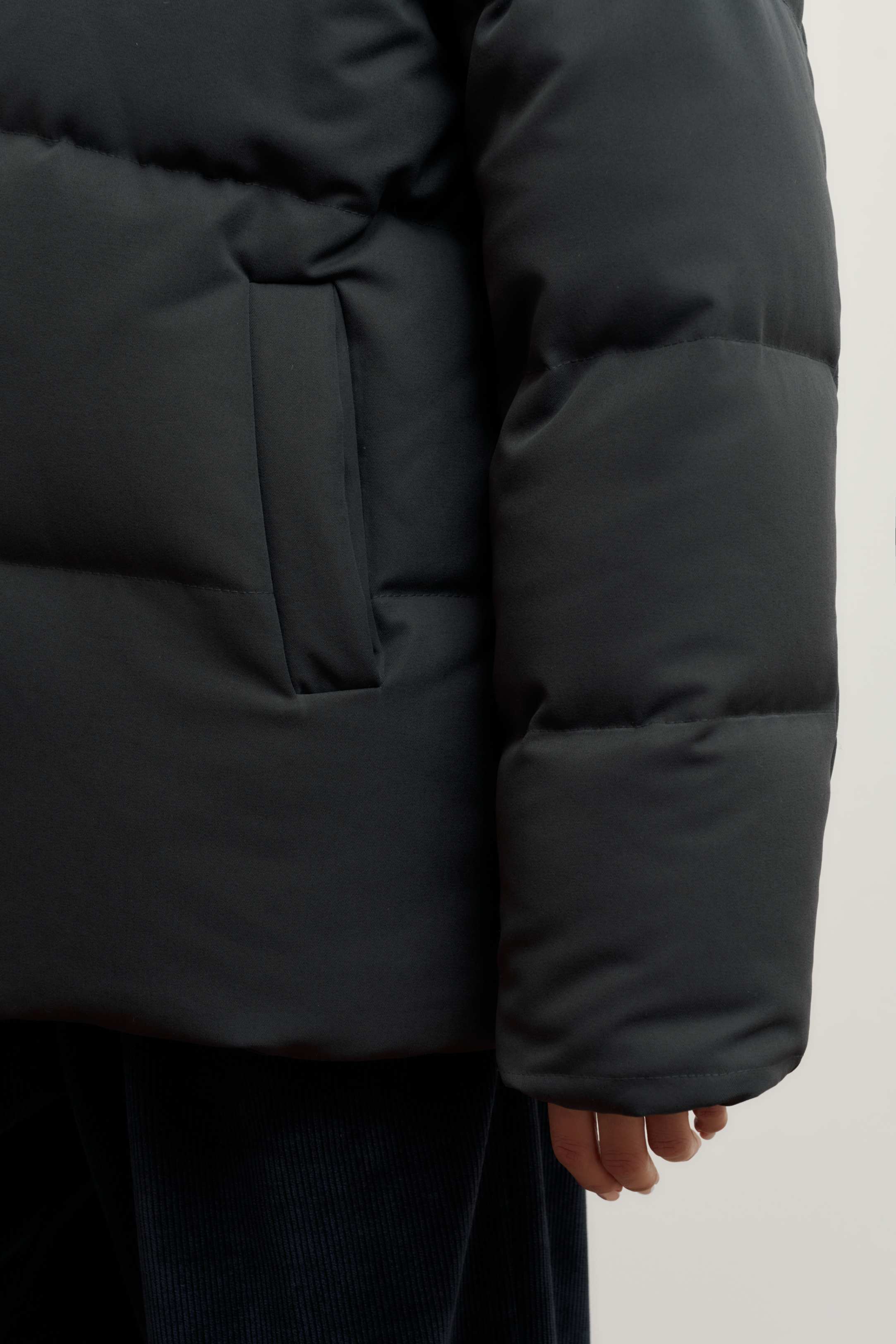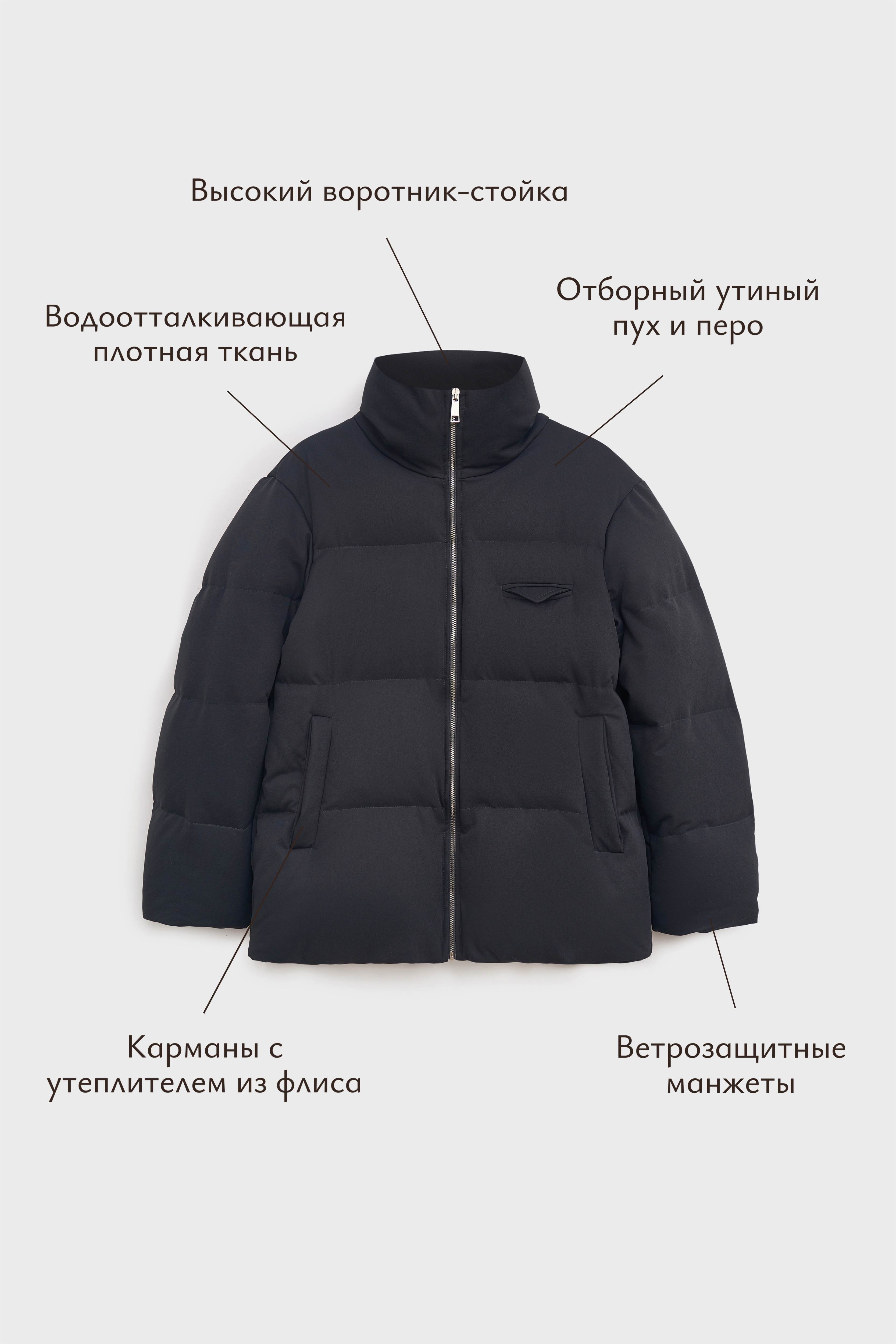 Стандартная короткая длина, крупная стежка и застежка на молнию — классический крой и лаконичный дизайн делают модель универсальной. Высокий воротник-стойка обеспечивает дополнительную защиту от ветра: температурный режим изделия — до -25°C.