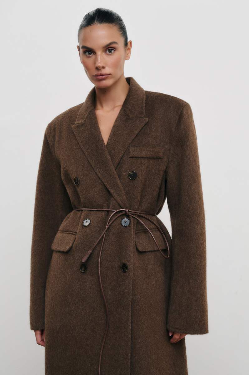 Еще один способ нетривиально стилизовать пояс-шнурок — приталить им прямое пальто из нашей коллекции. Экспериментируйте со способами завязывания, чтобы создать неповторимый аутфит.