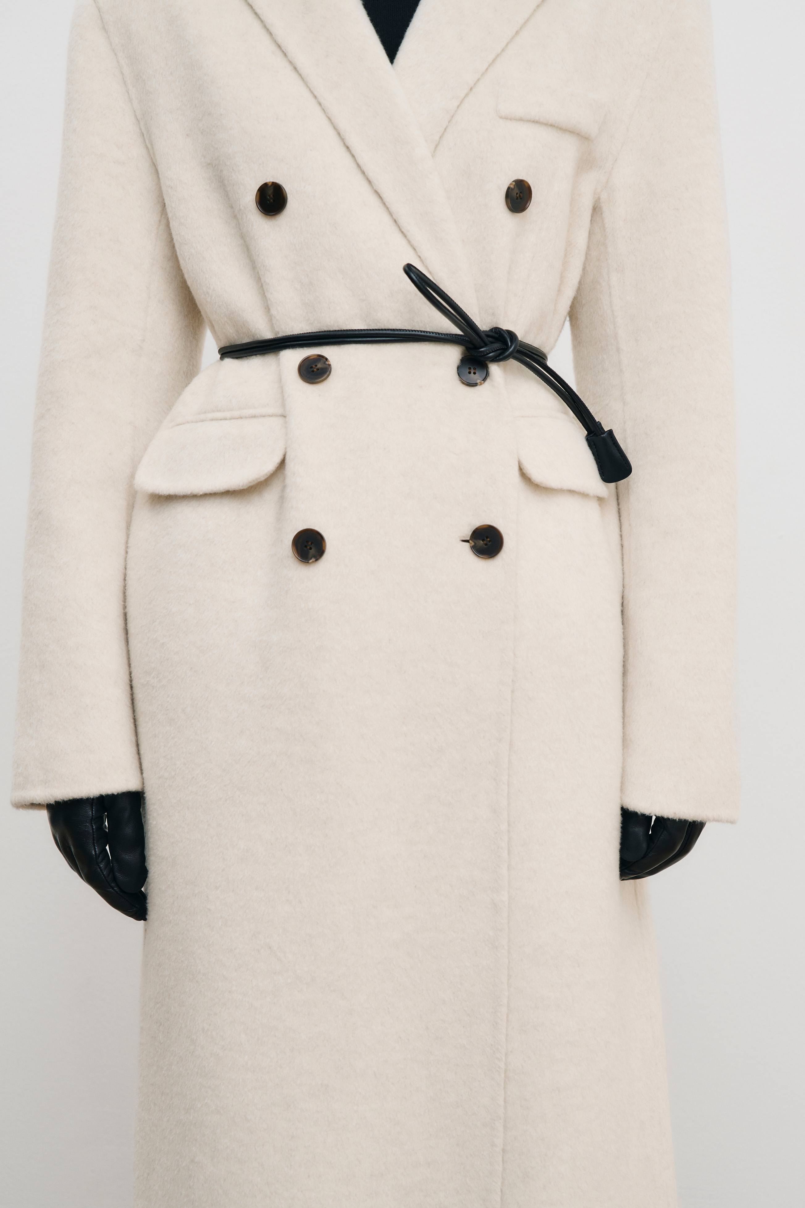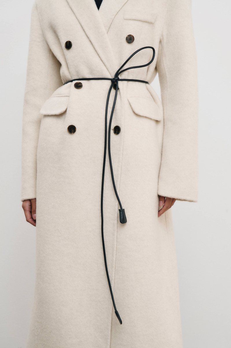 Еще один способ нетривиально стилизовать пояс-шнурок — приталить им прямое пальто из нашей коллекции. Экспериментируйте со способами завязывания, чтобы создать неповторимый аутфит.