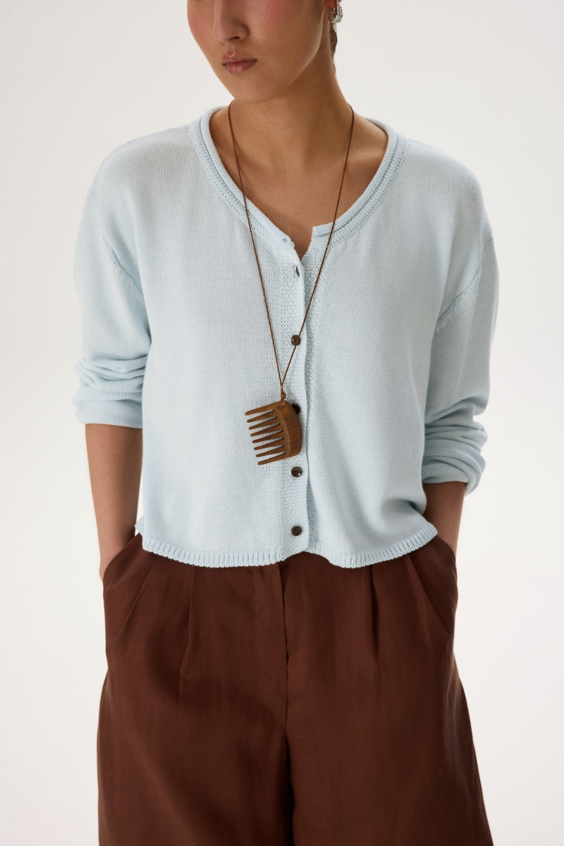 Команда ROSI рекомендует носить гребень на шее, сочетая с платьями из коллекции "Это все мое родное" или с изделиями из льняной капсулы.