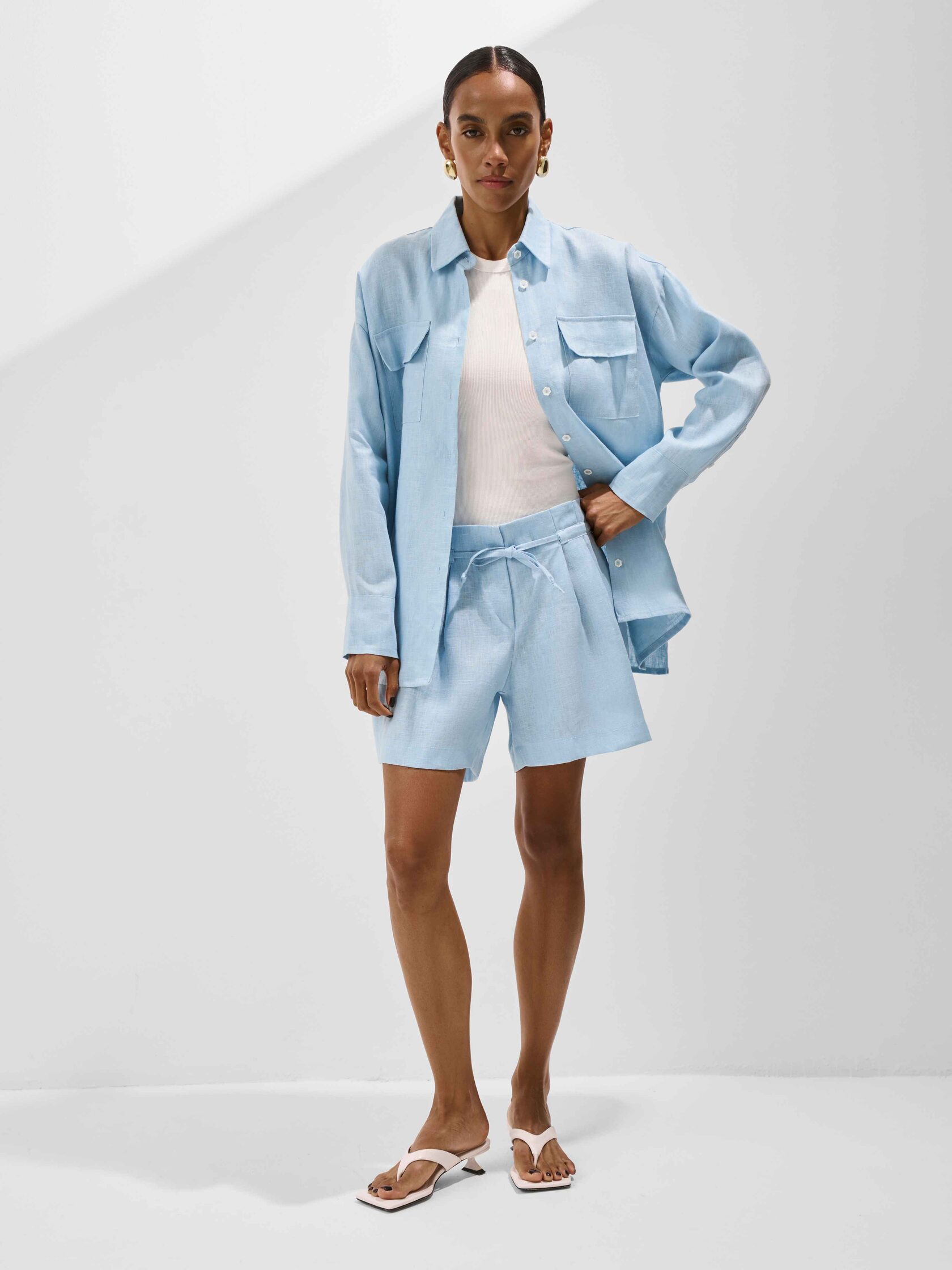 Сочетайте шорты с другими айтемами из нашей льняной коллекции: топом и рубашкой.