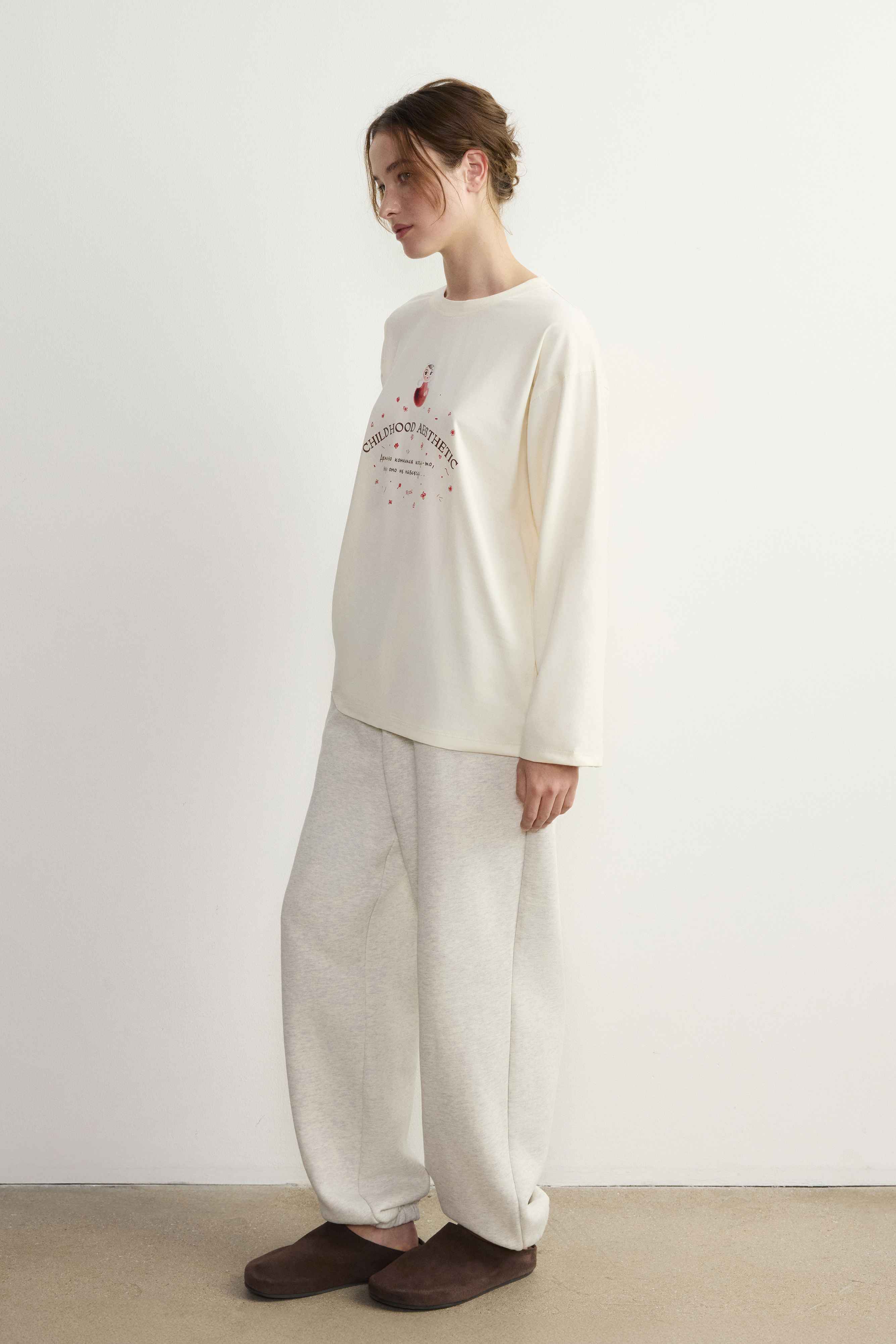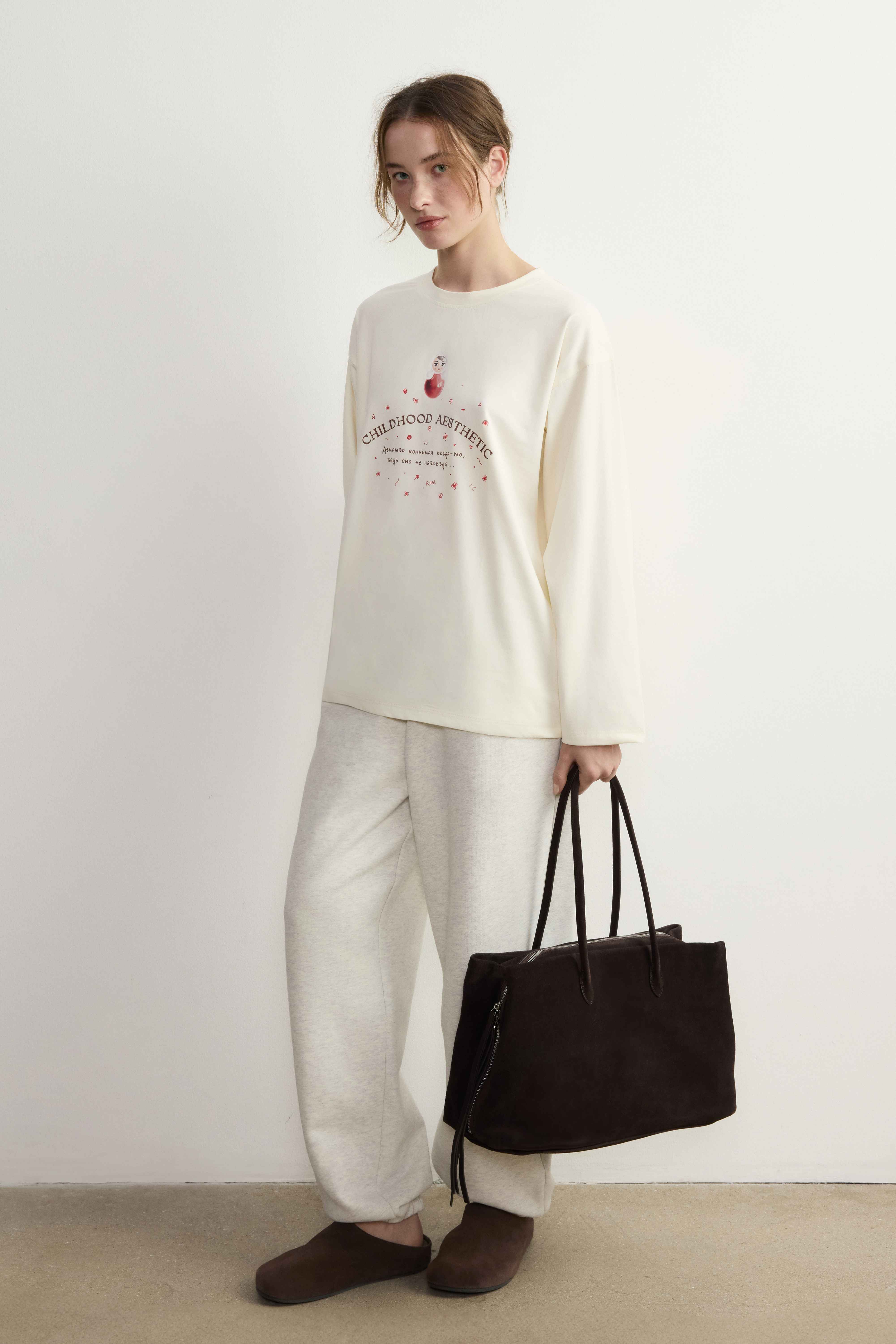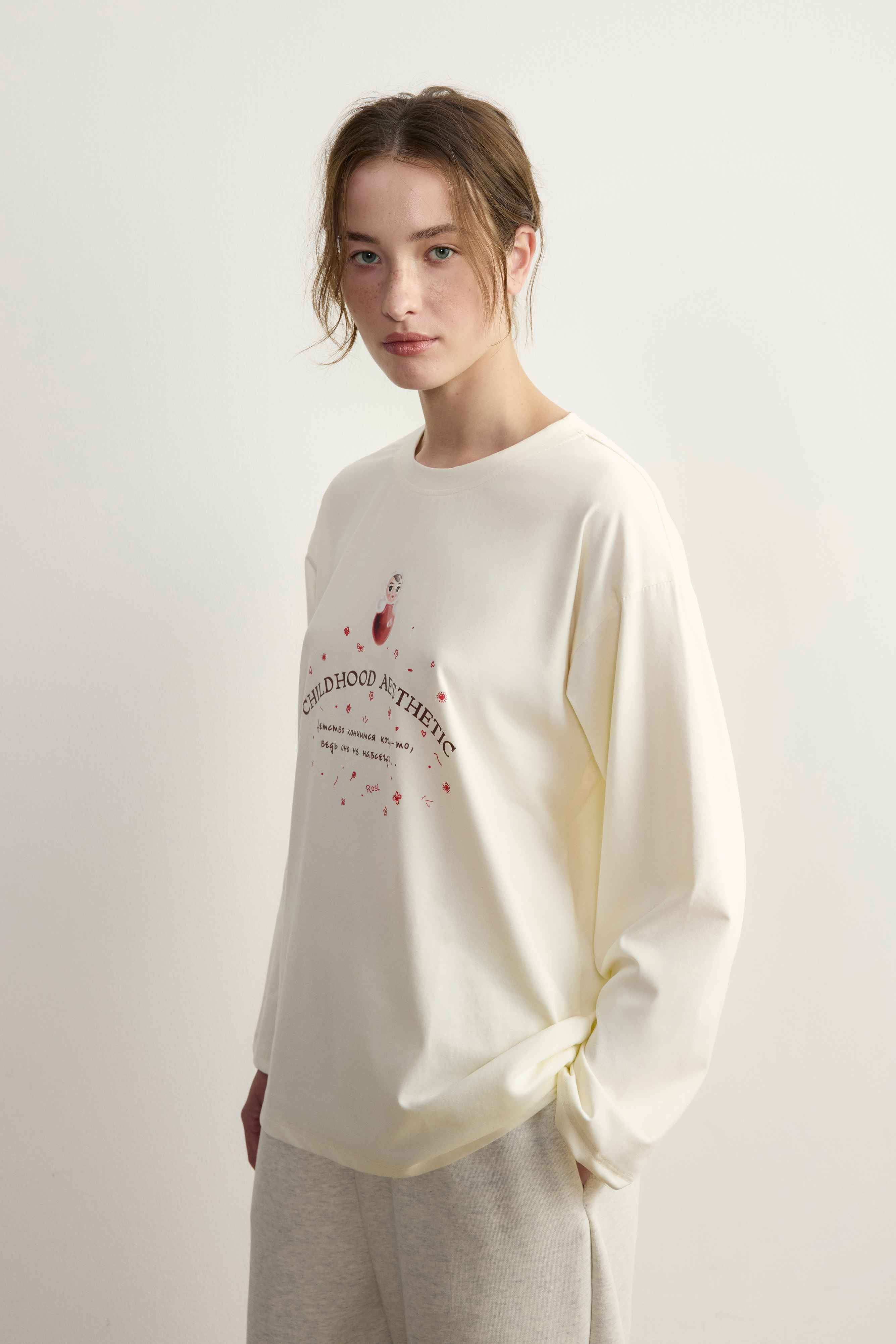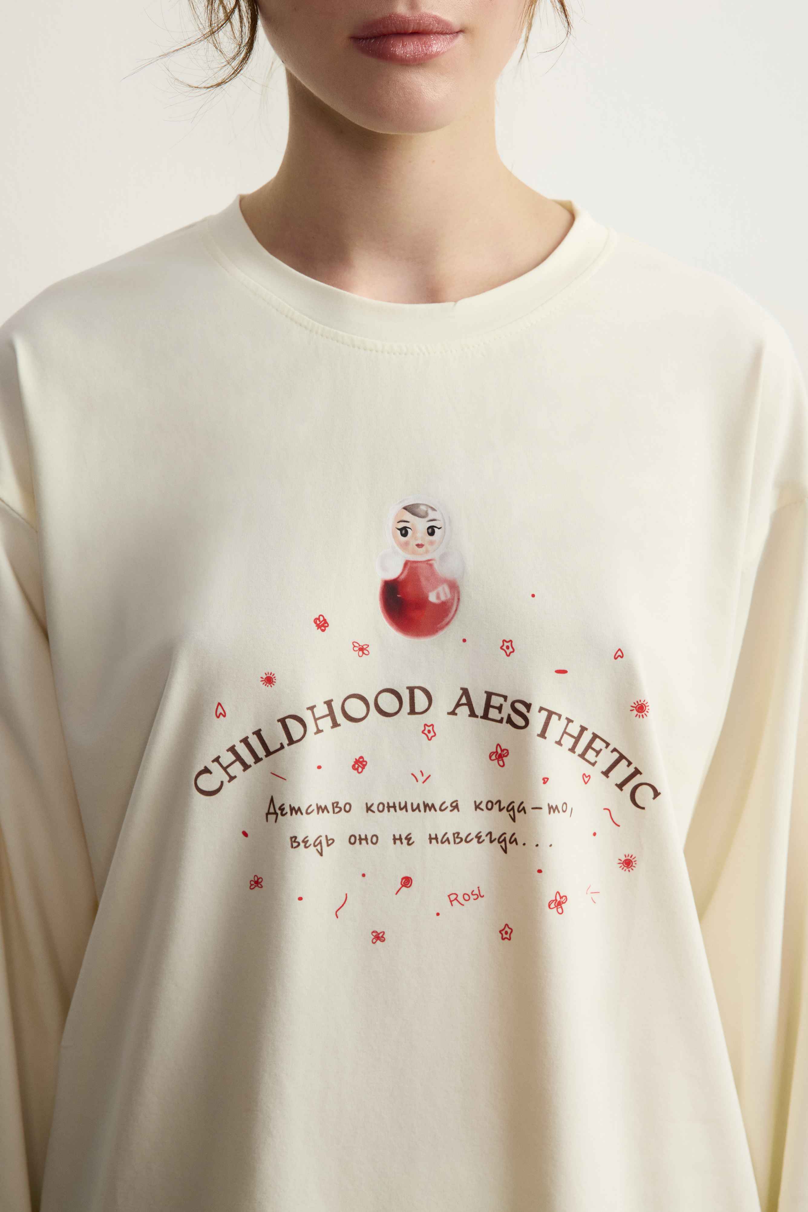 1. Неваляшки украсили наши новые лонгсливы — свободные, со спущенным плечом и круглым вырезом горловины.